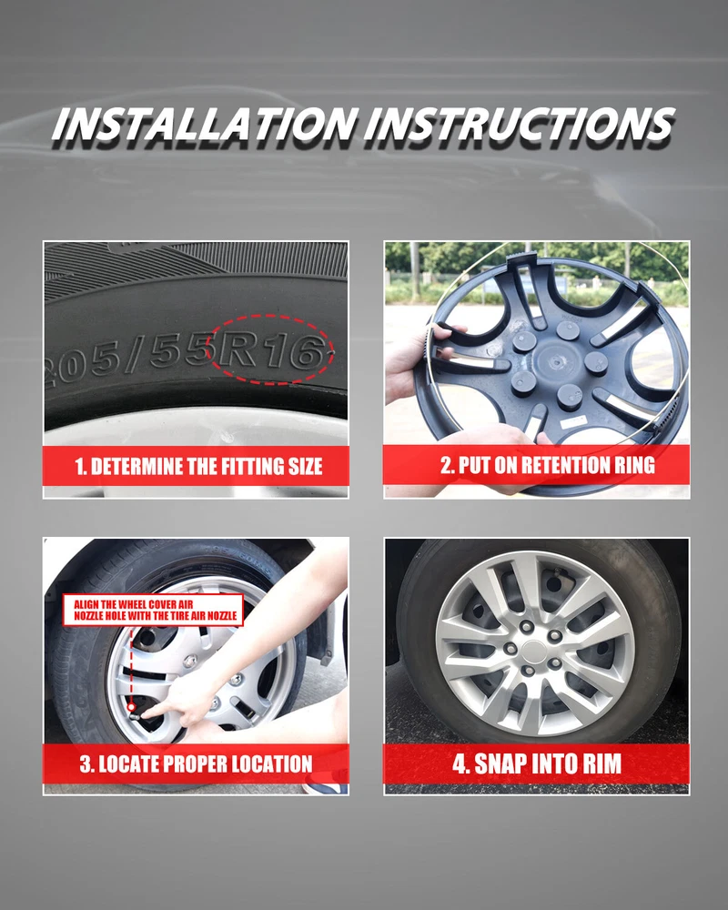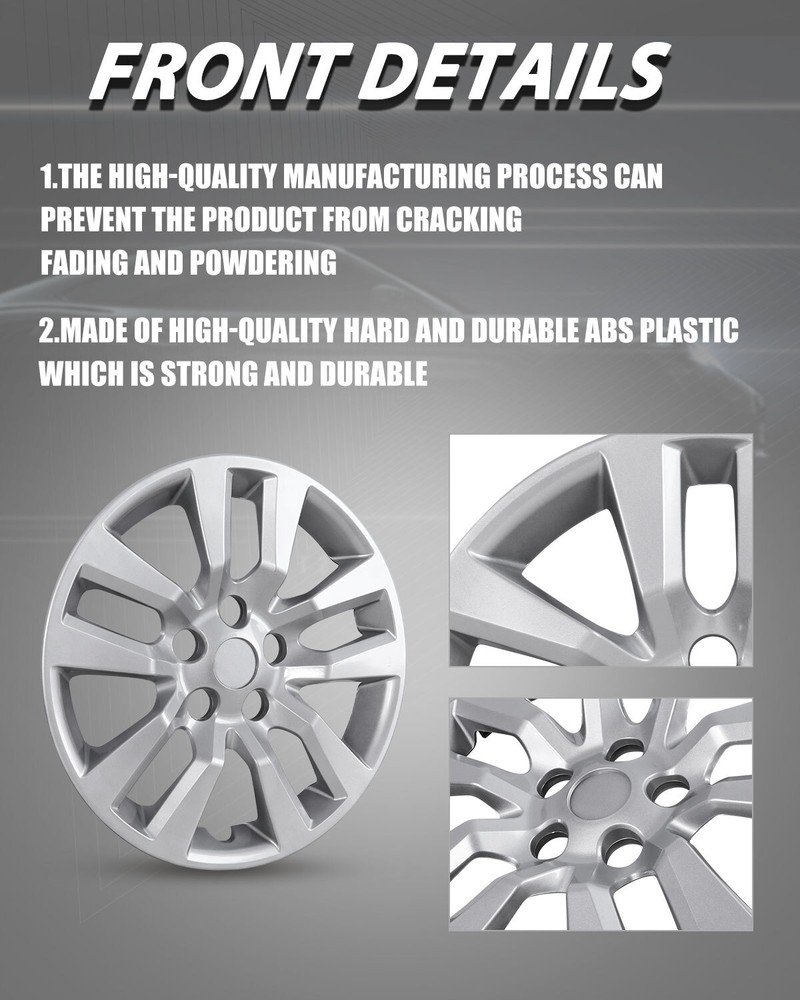 Store Categories Other Car Refrigerator Front Bumper Rear Bumper Fender Flares Inner Fenders Side Steps Running Board A-Pillar Light Mount Brackets Headlights Taillights Fog Lights LED Headlights LED Taillights LED Fog Lights Jeep Chevrolet Ford Toyota Dodge GMC 1PCS Wheel Covers: https://www.ebay.com/itm/405314564390 Wheel Covers Features ✴ PERFECT FIT: This wheel hub cap is specifically designed to perfectly fit for 16-inch wheels, ensuring a seamless match and enhanced aesthetics. It complements the overall design of the vehicle, elevating its visual appeal. ✴ HIGH-QUALITY MATERIAL: Constructed from high-quality materials, this wheel hub cap guarantees durability and longevity. It withstands various road conditions and environmental factors encountered during daily driving, maintaining its pristine condition. ✴ EASY INSTALLATION: Installing this wheel hub cap is a breeze and requires no specialized tools or modifications. It comes with a user-friendly system, allowing for a hassle-free installation process by following the provided instructions. ✴ PROTECTIVE FUNCTION: Besides its aesthetic appeal, this wheel hub cap serves as a protective barrier for the wheels. It prevents scratches and potential damage caused by stones, debris, or other objects, safeguarding the wheel's surface. ✴ AFTER-SALES SERVICE: If There Is a Loss of Product Parts, or Any Parts of The Problem, We Can Provide After-Sales Service, Please Contact Us on The Order Page. Wheel Covers Specification ✴ Type: Hub caps ✴ Number in Pack: 4 ✴ Color: Silver lacquer ✴ Material: ABS ✴ Compatible Wheel Diameter: 16 in ✴ Finish: Glossy ✴ Installation Type: Snap-On ✴ Model: For 2013-2018 Nissan Altima Sedan Wheel Covers Package ✴ 1 Set of 4 Hub caps and 4 retention rings Payment Delivery details Terms of sales About us Contact us Payment We accept PayPal, credit card , Apple Pay & Google Pay etc. Delivery details All items will be shipped within 1-3 business days after payment received, we will try our best to ship out as soon as we can, hope for your understanding. Please double confirm your address and contact information, which will help the delivery faster and more accurately. Note :buyers who purchase international products need to pay import tariffs!!! Terms of sales Professional installation is highly recommended. Any problem of the item please feel free to contact us first , please D o Not leave negative feedback before that, or simply return it within 60 Days in original condition. We will resolve it for you ASAP. About us Any questions please do not hesitate to contact us directly by eBay message . We will reply you within 24 hours asap, thanks for your understanding. Contact us Should you have any problem or require any further information please feel free to contact us . If you are satisfied with our product and service, please kindly leave us a positive feedback. Popular Categories On Mar 14, 2025 at 20:22:33 PDT, seller added the following information: