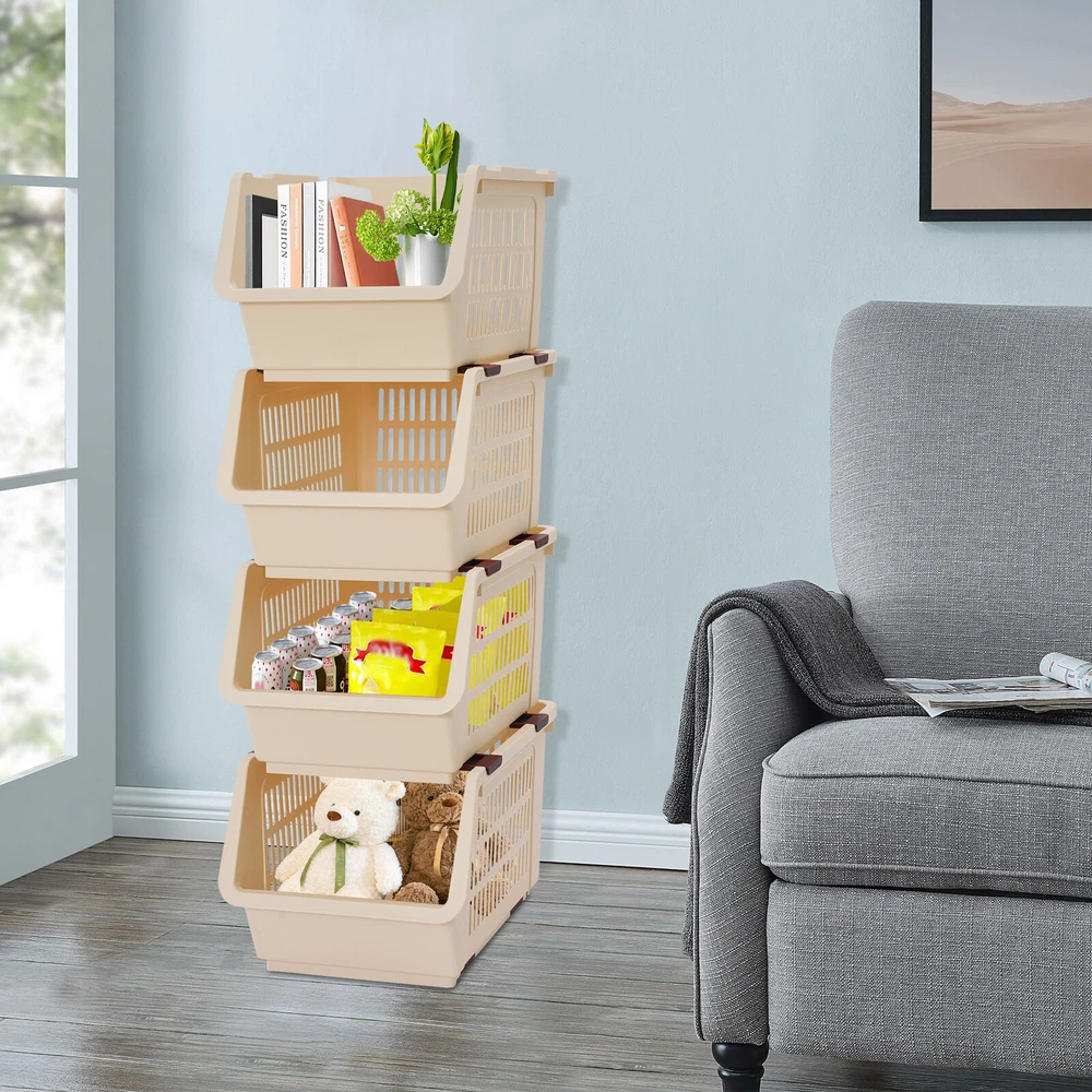 Set of 4 Stackable Mobile Storage Basket Storage Bins Large Size Toy Organizers Description This stackable storage basket is both stylish and practical. It is made of high-class material and is durable. The stylish appearance makes it a bright addition to the home environment. Whether it is the kitchen, bedroom, or office, it can help you easily store various items, starting a clean and organized new life! Key Features Made to Last: This product is made of premium PP with an injection molding process, which is safe to use, impact-resistant, odorless, a nd wear-resistant, ensuring long-term use. Large Capacity: 4 large-capacity baskets ( four pieces combined together size: 11*13.8*33.5 in) provide plenty of storage space for your books, seasonings, and other items, creating a neater environment. Strong Load-bearing Capacity: Premium material and stable structure ensure a strong load-bearing capacity of 55.12 lbs ( four pieces combined together ) , so you don't need to worry about it being easily deformed and damaged, using it with peace of mind. Stylish Appearance: The beige tone, rectangular shape, and smooth lines give this product a stylish appearance, making it easy to blend into various places. Space Saving: The vertical structure and small footprint (11*13.8 inches) allow it to fit better in the corners of the room without taking up much space. When you're not using these baskets, they can be nested with each other, which is convenient for storage and space-saving. User-friendly: The U-shaped bevel open-front design allows you to access your items without removing baskets stacked on top. Moreover, the raised opening design makes the placed items difficult to fall. The hollow design not only adds a sense of fashion but also maintains breathability so that items are not easy to breed mold . 4PCS: There are a total of 4 storage baskets inside the package, which you can use individually or stack the products into a multi-tier storage rack as needed. Easy to Move: The two rollers on the bottom make it easy to move this product, greatly saving effort. Effortless Cleaning: It has a smooth surface and a simple structure, so you can easily clean it with cloth (not included) and water. Ideal Gift: With good performance and a nice appearance, it can be used as an ideal housewarming gift for parents, friends, and lovers so that they can also enjoy a neater life. Details Smooth Edges: The rounded and smooth edges not only increase the aesthetics of the product but also improve the safety of use. Telescopic Buckles: They allow you to freely and securely combine 4 baskets together to form a multi-tiered storage rack. The buckle can be retracted for single- basket use. Application It can be used in the kitchen, bathroom, living room, laundry room, bedroom, toy room, office, classroom, etc, for storing vegetables, fruits, snacks, bath supplies, books, toys, and more. Specification Color: Beige Material: PP Process: Injection Molding Style: Modern Assembly Required: No Shape: Rectangular Mounting Type: Floor Standing Number of Pieces: 4 Overall Load-bearing Capacity( Four Pieces Combined Together ): 25kg/ 55.12 lbs Each Basket Height: 22cm/ 8.7 in Product Size ( Four Pieces Combined Together ) : 28*35*85cm/11*13.8*33.5 in Package Size: 35*33*29cm/13.78*12.99*11.42 in Gross Weight: 2.1kg/4.63 lbs Net Weight: 1.6kg/3.53 lbs Package Included 4 * Stackable Storage Baskets Notes Please note that our package does not include other items. Please use within the product's load-bearing range. Please allow the slight color difference caused by the shooting light and 1-3cm error due to manual measurement, and make sure you do not mind before ordering. Payment Delivery details Terms of sales About us Contact us Payment We accept ebay payment 。 Fees such as import duties, taxes are not included in the item price or shipping costs. These charges are the buyer's responsibility. Delivery details Shipping: 2-9 working days to: USA Terms of sales We maintain high standards of excellence and strive for hundred percent customer satisfaction. Feedback is very important to us. We hope that you contact us immediately before you give neutral or negative feedback, so that we can address your concerns. It is impossible to address issues if we do not know about them! About us Your satis faction is our ultimate goal. We work hard to earn your trust and future business. Our certified technicians have tested each item before shipping. The unit comes with 1 year limited warranty on all manufacturing defects. a) If you receive a defective item, you may return it or ask for a discount. Please contact us within 14 days after you receive the package. b) What you returned must be intact and in its original packaging as re? u. Customer is responsible for shipping costs of the returned item. c) We will cover the cost of shipping back t with the shipping rate indicated in the registration page. We will send you a new unit or refund the full payment you paid. Thank you. Contact us Business Hour Business Hour: Monday To Friday: 8:30 AM to 5:00 PM (Beijing China time) Due to time zones, our reply to your questions may not be immediately. But within above working time, we will reply your email within 24 hours. If it's non-workdays, please kindly be patient and wait till Monday. Please contact us with ebay message. Please feel free to contact us if you have any questions. Monday To Friday: 8:30 AM to 5:00 PM (Beijing China time) Due to time zones, our reply to your questions may not be immediately. But within above working time, we will reply your email within 24 hours. If it's non-workdays, please kindly be patient and wait till Monday. Please contact us with ebay message. Please feel free to contact us if you have any questions. Brand Unbranded Shipping Notice Can not ship to Puerto Rico, Alaska/Hawaii Model LYA-WS-049 Item Length As pictures Item Width As pictures Item Height As pictures Type Storage Baskets Material PP Color Beige