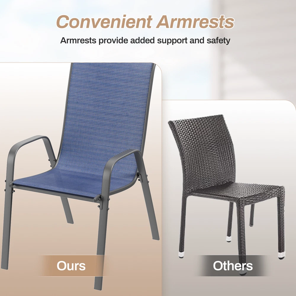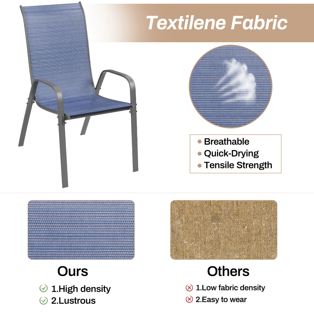Description: Elevate your outdoor dining experience with our exceptional Patio Chairs, designed for durability and comfort.Transform your outdoor space into a welcoming oasis with our Patio Chairs set. Durable, stylish, and designed for everyday use, they're the perfect addition to your outdoor furniture collection. Don't miss out on the opportunity to enhance your outdoor lifestyle! Features: Yiwsz-0 Your Best Online Business Partner Patio Chairs Set of 4, Outdoor Textilene Stackable Dining Sitting for All Weather, Breathable Lawn Garden Furniture with Armrests, Heavy Duty Metal Frame for Porch, Backyard, Pool side, and Deck Description: Elevate your outdoor dining experience with our exceptional Patio Chairs, designed for durability and comfort.Transform your outdoor space into a welcoming oasis with our Patio Chairs set. Durable, stylish, and designed for everyday use, they're the perfect addition to your outdoor furniture collection. Don't miss out on the opportunity to enhance your outdoor lifestyle! Features: Textilene Fabric: Fade-resistant Textilene fabric is very breathable, so that the patio furniture set will not feel hot and sticky even in hot weather. Wear resistance and quick drying also make the outdoors chairs more suitable for backyards, poolsides, and gardens Heavy Duty Metal Frame: Frame of the stackable chairs is made of 0.8mm iron pipe, with an overall load-bearing capacity of 330lbs. Outdoor dining chairs are sturdy and durable and can adapt to all weather conditions Armrests: Patio dining chairs has armrests, which increase the comfort of the garden chair. Deck chair with armrests can support and prevent you from falling sideways, allowing you to stay seated and making it easier to stand up Ergonomic: Seat width of the outdoor chair set is 20 inches, the seat height is 17 inches, and the high backrest design conforms to the ergonomic structure and is comfortable to sit on Easy To Assemble&Store: Metal chairs set of 4/8 is CKD and requires 2 people to assemble. When installing, tighten each screw to 70%, and then tighten them one by one after all the screws are tightened.Patio set can be stacked, which makes the storage of the stackable dining chairs convenient and simple, and does not take up space Specification: Size: 28.3*21.26*36.6inch Color: Sapphire Blue Frame: Steel metal Fabric:Textilene Armrests:Armrests Place Of Use: Outdoor, Garden, Poolside, Backyard, Porch, Deck Style: Modern" 【Installation Instructions】Note: At least two people are required to install together!!! Since the chair is partially disassembled when it is delivered, you need to install it manually after receiving it. The package contains detailed assembly instructions and parts, or you can follow the video on the page to install it, so that you can complete the assembly in a short time. If you have any questions, you can always contact customer service. 【Maintenance Instructions】To extend the service life of the garden chair, do not use corrosive cleaners; when not in use, cover the chair with a protective cover to protect the furniture. To remove stubborn dirt, you can use a high-pressure cleaner, and be sure to dry it after cleaning to avoid rust, or use a wet towel for care. Storage conditions: Store in a clean, dry place to avoid hair and rust. Item Specifics Type Armchair Brand Unbranded Item Height 37.3 in Item Length 26.4 in Item Width 21.3 in Set Includes Chair Indoor/Outdoor Indoor & Outdoor Features With Armrest Maximum Weight Capacity 330 lb Color Sapphire Blue Payment We only accept Payoneer payment. Shipping We will ship out your item within 24-48 business hours after payment received; We don't process orders on weekends and holidays. Returns 30 day returns. Full / Partial Money Back, or Replacement. Contact Us If you have ANY problems, please feel free to let us know, we'll get back to you ASAP and do our bets to resolve it. Yiwsz-0 Your Best Online Business Partner DESCRIPTION PAYMENT SHIPPING RETURN POLICY CONTACT US Store Category Store Home Kids Slide Garbage Can Indoor Furniture Fitness Home & Garden Hot Item Oversized Padded Zero Gravity Chair, 2pcs Folding Outdoor Patio Recliner, 350lbs USD 139.99 Patio Chairs Set of 4 Breathable Stackable Dining Chairs Outdoor Yard Furniture USD 125.99 3pcs Chaise Lounge Chair Outdoor Adjustable Patio Reclining Chair W/ Side Table USD 169.99 Set of 4 Patio Dining Chairs Outdoor Stackable Armrest Space Saving Garden USD 107.99 Outdoor Stackable Dining Chairs Set of 4, All-Weather Patio Chairs with Armrests USD 113.99 New List Item Dog Crate Furniture Wooden Indoor Dog Kennel End Table Pet cage Furniture USD 189.99 Kids Table and 2 Chairs 4-in-1 Toddler Activity Table w/ Lego and Duplo Bricks USD 99.99 Kids Toy Storage Organizer Toddler 3-Tier Rocket Bookshelf with Side shelves USD 104.99 Dog Crate Furniture Wooden Indoor Dog Kennel End Table Pet cage Furniture USD 189.99 Kids Toy Storage Organizer Toddler Bookshelf w/ 2 Tier Wooden Bookshelf Bookcase USD 104.99 Help & Info Payment Policy Shipping Policy Return Policy FAQ About Us Patio Chairs Set of 4, Outdoor Textilene Stackable Dining Sitting for All Weather, Breathable Lawn Garden Furniture with Armrests, Heavy Duty Metal Frame for Porch, Backyard, Pool side, and Deck Description: Elevate your outdoor dining experience with our exceptional Patio Chairs, designed for durability and comfort.Transform your outdoor space into a welcoming oasis with our Patio Chairs set. Durable, stylish, and designed for everyday use, they're the perfect addition to your outdoor furniture collection. Don't miss out on the opportunity to enhance your outdoor lifestyle! Features: Textilene Fabric: Fade-resistant Textilene fabric is very breathable, so that the patio furniture set will not feel hot and sticky even in hot weather. Wear resistance and quick drying also make the outdoors chairs more suitable for backyards, poolsides, and gardens Heavy Duty Metal Frame: Frame of the stackable chairs is ma