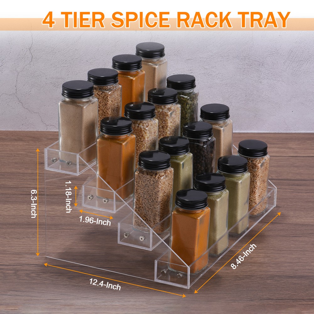 Document APPLY TO - In the kitchen, you can store the spices, baking supplies, snacks, tea bags, etc. In the bathroom, it can be used to store toiletries, perfume, cosmetics and towels; Nail polish bottles also support using as an essential oil rackSPECIFICATION:Material: AcrylicColor: TransparentTray Size: 31 cm x 5 cm x 3 cm/12.2" x 1.96" x 1.18"(L*W*H)Total Size: Approx. 31.5 cm x 21.5 cm x 16 cm/ 12.4" x 8.46" x 6.3"(L*W*H)QUANTITY INCLUDED:1 Set x Spice Rack Organizer16 pcs x Screws16 pcs x Nuts1pcs x ScrewdriverADVANTAGE - The spice rack is made of acrylic, which is sturdy and wear-resistant, has a good load-bearing capacity and is not easy to collapse and deform.INSTALL: Peel off the protective film of the acrylic plate before installation, and use our screwdriver and screws to install it within two minutes. Assemble the acrylic spice rack with gloves and wipe it with a clean cloth after assembly.Notes: Due to the light and screen setting difference, the item's color may be slightly different from the pictures. Please allow slight dimension difference due to manual measurement. 4 Tier Clear Acrylic Spice Rack Kitchen Seasoning Jar Rack For Cabinet APPLY TO - In the kitchen, you can store the spices, baking supplies, snacks, tea bags, etc. In the bathroom, it can be used to store toiletries, perfume, cosmetics and towels; Nail polish bottles also support using as an essential oil rack SPECIFICATION: Material: Acrylic Color: Transparent Tray Size: 31 cm x 5 cm x 3 cm/12.2" x 1.96" x 1.18"(L*W*H) Total Size: Approx. 31.5 cm x 21.5 cm x 16 cm/ 12.4" x 8.46" x 6.3"(L*W*H) QUANTITY INCLUDED : 1 Set x Spice Rack Organizer 16 pcs x Screws 16 pcs x Nuts 1pcs x Screwdriver ADVANTAGE - The spice rack is made of acrylic, which is sturdy and wear-resistant, has a good load-bearing capacity and is not easy to collapse and deform. INSTALL: Peel off the protective film of the acrylic plate before installation, and use our screwdriver and screws to install it within two minutes. Assemble the acrylic spice rack with gloves and wipe it with a clean cloth after assembly . Notes : Due to the light and screen setting difference, the item's color may be slightly different from the pictures. Please allow slight dimension difference due to manual measurement. Hot Item Payment 1.We accept eBay payment . 2.Payment must be received within 7 business days of auction closing. Shipping 1.We ship to your eBay or Paypal address. Please make sure your eBay and Paypal address is correct before you pay. 2.Items will be shipped within 1-3 business day when we received payment. 3.Delivery time depends on destination and other factors. Description Policy 4 Tier Clear Acrylic Spice Rack Kitchen Seasoning Jar Rack For Cabinet APPLY TO - In the kitchen, you can store the spices, baking supplies, snacks, tea bags, etc. In the bathroom, it can be used to store toiletries, perfume, cosmetics and towels; Nail polish bottles also support using as an essential oil rack SPECIFICATION: Material: Acrylic Color: Transparent Tray Size: 31 cm x 5 cm x 3 cm/12.2" x 1.96" x 1.18"(L*W*H) Total Size: Approx. 31.5 cm x 21.5 cm x 16 cm/ 12.4" x 8.46" x 6.3"(L*W*H) QUANTITY INCLUDED : 1 Set x Spice Rack Organizer 16 pcs x Screws 16 pcs x Nuts 1pcs x Screwdriver ADVANTAGE - The spice rack is made of acrylic, which is sturdy and wear-resistant, has a good load-bearing capacity and is not easy to collapse and deform. INSTALL: Peel off the protective film of the acrylic plate before installation, and use our screwdriver and screws to install it within two minutes. Assemble the acrylic spice rack with gloves and wipe it with a clean cloth after assembly . Notes : Due to the light and screen setting difference, the item's color may be slightly different from the pictures. Please allow slight dimension difference due to manual measurement. Hot Item Payment 1.We accept eBay payment . 2.Payment must be received within 7 business days of auction closing. Shipping 1.We ship to your eBay or Paypal address. Please make sure your eBay and Paypal address is correct before you pay. 2.Items will be shipped within 1-3 business day when we received payment. 3.Delivery time depends on destination and other factors.