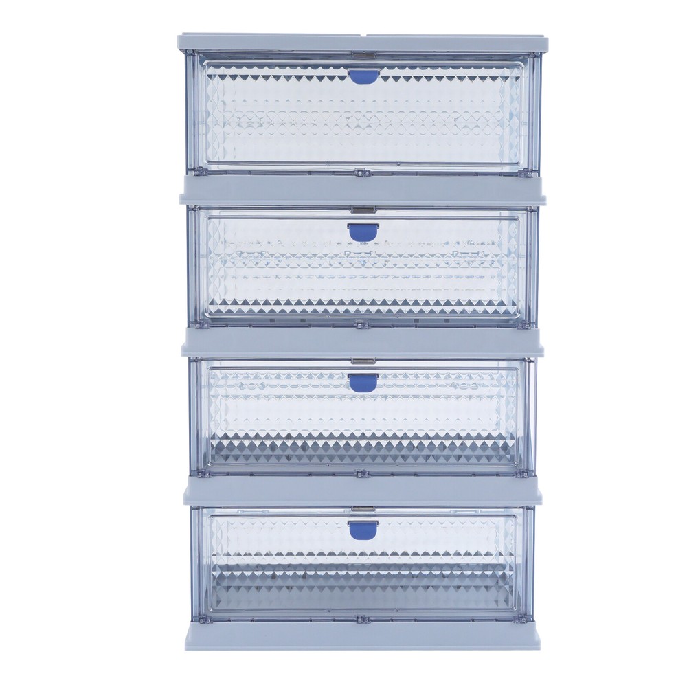 Have a nice day~ Description Do you still struggle with clutter and lack of storage space in your home? This storage cabinet will keep your room organized with its small footprint and large storage space. The strong weight-bearing capacity allows you to use it with confidence, and the foldable design makes it easy to carry and store. If you want to have a neat space, this product is an indispensable helper for you. Key Features Solid and Durable : This product is made of high-class PP and PS, which is anti-corrosion, anti-rust, environmentally friendly, strong, and durable, ensuring you can use it for a long time. Spacious Storage Space : The 4-tier structure provides you with the convenience of storing different categories of items in separate sections, including shoes, snacks, pet supplies, and toys. In addition, the large top platform is convenient for placing your flower pots, bags, keys, umbrellas, and more. Thoughtful Design: The visual design allows you to see items inside at a glance, making it easier to select, access, and place items. The magnetic cabinet door will not open automatically when moving or stationary and is effective in preventing dust and insects in daily use. The diamond panel allows you to see what is inside in a way that doesn't look messy. Strong Bearing Capacity : High-class material, one-piece frame, and rectangular structure make this product withstand 14.33 lbs in each tier, so you can use it with confidence without worrying about collapsing. Foldable and Portable: You can fold this product into a smaller size for convenient storage when not in use, which will not take up much space. Simple to Use : This product adopts an integrated foldable design with a simple structure without additional assembly. You simply unfold it to start using it, thus saving time and effort. Effortless Clean : The smooth surface and simple structure make the cabinet easy to clean with water and a damp cloth (not included). Ideal Gift : Beautiful appearance and practical function make it an ideal housewarming gift for family and friends so that they can enjoy a more exquisite life. Stylish Appearance : The pleasing blue color, diamond patterns on the doors, and smooth lines make the whole product lovely and modern. Wherever it is placed, it will be beautiful scenery. Application It is suitable for storing shoes, cosmetics, books, towels, snacks, sundries, and more in entrances, kitchens, closets, study rooms, living rooms, cloakrooms, or bedrooms. Details Practical Handles : The handles on each door make it easy to open and close the doors. Smooth Edges : They not only enhance the aesthetics of the product but also improve safety during cleaning and use. Specification Color: Blue Style: Modern Shape: Rectangle Material: PP, PS Process: Injection Molding Mount Type: Floor Standing Each Tier Load-bearing Capacity: 6.5kg/14.33 lbs Number of Tiers: 4 Product Size(Unfolded): 52.7*34.8*89.24cm/20.7*13.7*35.1in Package Size: 59*24*42cm/23.23*9.45*16.54in Gross Weight: 6.55kg/14.44lbs Net Weight: 5.72kg/12.61lbs Package Included 1* Storage Cabinet Notes Please confirm the product dimensions before purchasing. Please avoid heavy impact, sharp objects, or direct high-temperature exposure during use to avoid product damage or aging. Please note that this product does not include other items shown in the picture. Please allow the slight color difference caused by the shooting light and 1-3cm error due to manual measurement and make sure you do not mind before ordering. Payment Delivery details Terms of sales About us Contact us Payment We accept ebay payment 。 Fees such as import duties, taxes are not included in the item price or shipping costs. These charges are the buyer's responsibility. Delivery details Shipping: 2-9 working days to: USA Terms of sales We maintain high standards of excellence and strive for hundred percent customer satisfaction. Feedback is very important to us. We hope that you contact us immediately before you give neutral or negative feedback, so that we can address your concerns. It is impossible to address issues if we do not know about them! About us Your satis faction is our ultimate goal. We work hard to earn your trust and future business. Our certified technicians have tested each item before shipping. The unit comes with 1 year limited warranty on all manufacturing defects. a) If you receive a defective item, you may return it or ask for a discount. Please contact us within 14 days after you receive the package. b) What you returned must be intact and in its original packaging as re? u. Customer is responsible for shipping costs of the returned item. c) We will cover the cost of shipping back t with the shipping rate indicated in the registration page. We will send you a new unit or refund the full payment you paid. Thank you. Contact us Business Hour Business Hour: Monday To Friday: 8:30 AM to 5:00 PM (Beijing China time) Due to time zones, our reply to your questions may not be immediately. But within above working time, we will reply your email within 24 hours. If it's non-workdays, please kindly be patient and wait till Monday. Please contact us with ebay message. Please feel free to contact us if you have any questions. Monday To Friday: 8:30 AM to 5:00 PM (Beijing China time) Due to time zones, our reply to your questions may not be immediately. But within above working time, we will reply your email within 24 hours. If it's non-workdays, please kindly be patient and wait till Monday. Please contact us with ebay message. Please feel free to contact us if you have any questions.