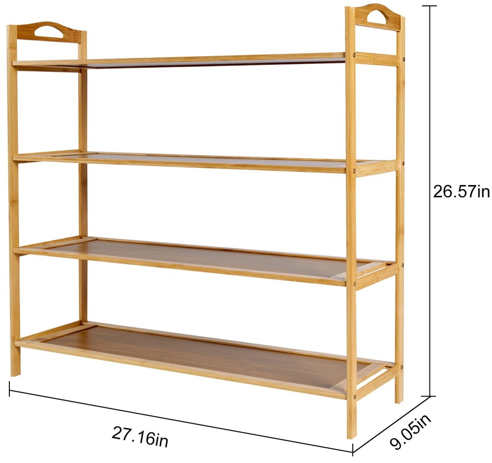 Bamboo Shoe Rack,Free Standing Wood Shoe Shelf, Multifunctional Bamboo Rack, Free Standing Shoe Shelf, Stackable Shoe Organizer for Hallway Closet, for Indoor & Outdoor Features: 【Space-saving storage】 The shoe rack for entryway is exquisitely designed, takes up little space, but has a large capacity, makes full use of space, effectively solves the problem of shoe storage, and can be easily placed even in a small space. 【Floor-standing design】 The Bamboo Wood Shoe Rack is stable and reliable, without worrying about tipping over. At the same time, there is space at the bottom for easy cleaning, keeping the floor clean and sanitary, making your home environment more tidy and comfortable. 【Multi-purpose use】 The X Tier Bamboo Shoe Rack can not only be used to store shoes, but also to place other items. The wooden shoe rack is very suitable for apartments, dormitories, bedrooms, living rooms, entrances, corridors, foyers, etc. Specifications: Product Name:Free Standing Wood Shoe Shelf Material: Natural Bamboo Color: Wood Color Structure: FiveLayers High-quality After-sales Service: We are committed to making every product well and creating high-quality products with heart. If you have any questions when buying our wooden shoe rack, please contact us in time. We will reply you online 24 hours a day and provide you with the best solution! Spacious X Tier Design:The free standing shoe racks features a X tier design offering ample space for all footwear. Impeccable for sneakers, high heels, or slippers, this entryway shoe rack keeps shoes organized and accessible. Premium Bamboo Material: This wooden shoe rack is durably and stylish. The smooth, polished surface adds elegance to your home, while the bamboo fragrance enhances your entryway or closet. Easy Assembly:The shoe rack for entryway features an easy assembly process. With included tools and clear instructions, you can set up this shoe shelf in minutes, enjoying a neatly organized shoe holder without hassle Sturdy and Durably:The sturdy construction of this shoe rack for closet wood supports multiple pairs of shoes without bending or breaking. Designed for long-term use, shoe organizer for entryway remains reliable in your entryway, hallway, or closet. Versatile and Stylish:Designed to complement any decor, the shoe rack for closet floor is versatile and stylish. Its sleek, modern design fits seamlessly into any entryway, hallway, or closet, enhancing the aesthetic appeal of your space.