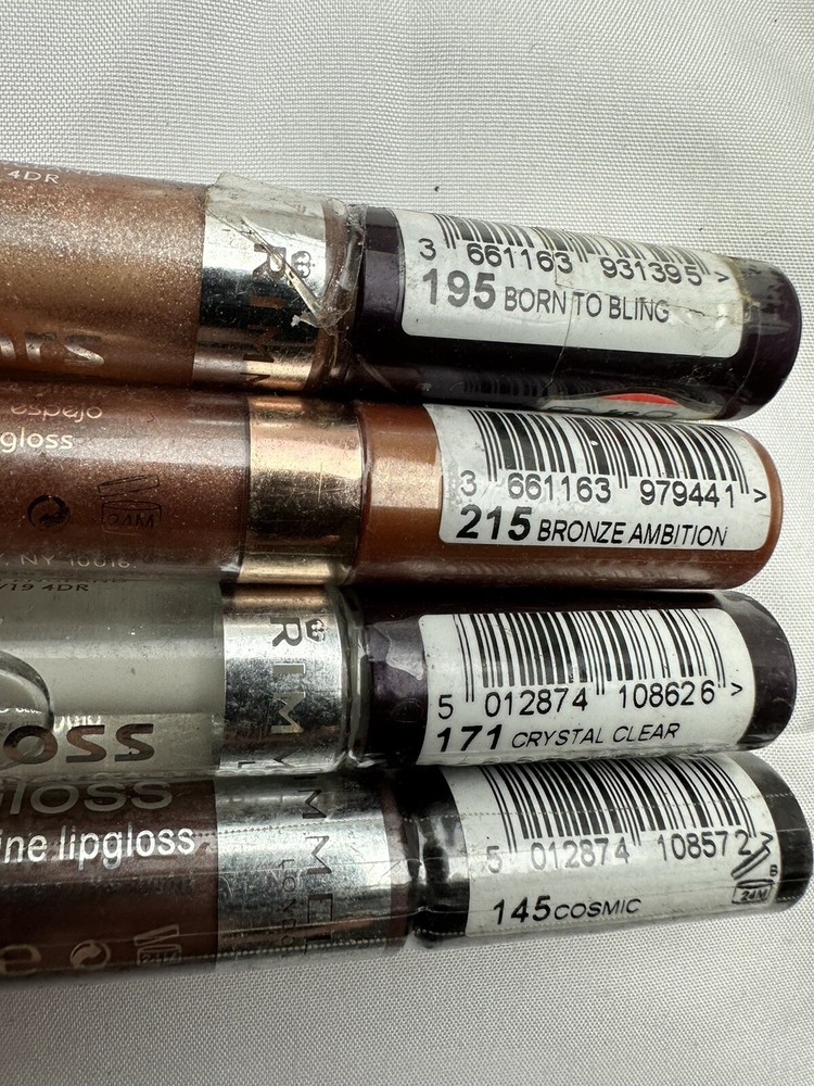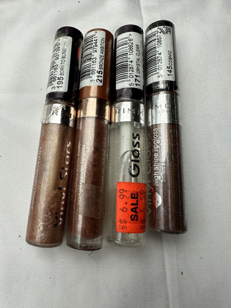 4 Tubes Lot RIMMEL Vinyl Gloss Mirror Shine Lipgloss Bronze Stars. Packaging not perfect Box 43