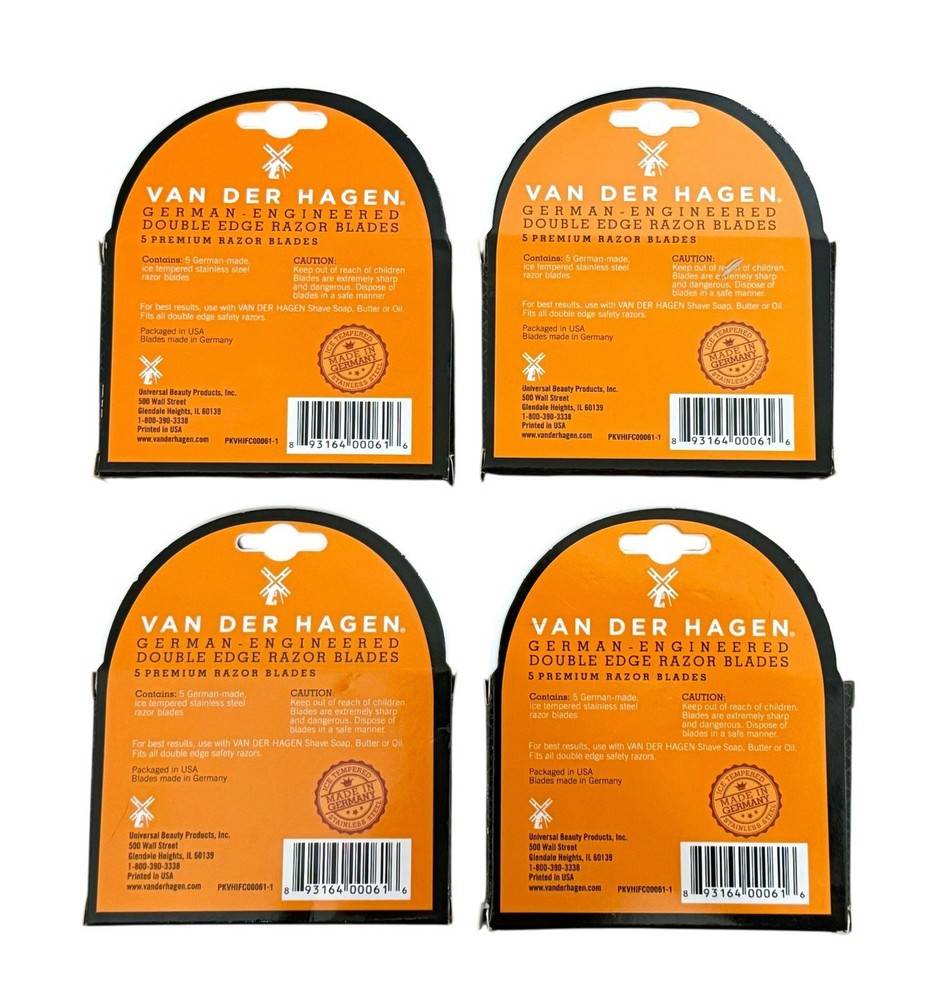 ~~~ 4x Van Der Hagen Double Edge Ice Tempered Stainless Steel 5 Premium Razor Blades ~~~ - Lot of 4