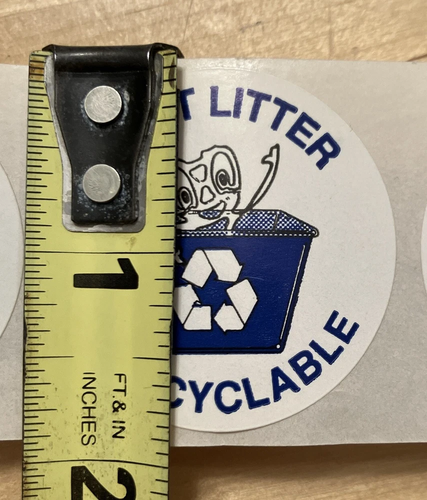 4 Vintage 80’s Sayings Stickers Don't Litter I'm Recyclable Recycle Plastic Crab Enjoy these 80s throwback environmental message stickers. Decades ago (before social media) it was cool to say it with stickers. It was the best way to get your parents, teachers and neighbors to learn what was recyclable. The Gen X's never thought to practice environmentalism by throwing Campbell's soup at the Mona Lisa or Super Gluing their hands to the museum floor. These stickers feature a crab like creature made out of the plastic rings that hold a six pack together. Way before the days that they were break away. The mascot is grinning and. waving from inside a blue recycling bin. A great sticker to bring attention to how far we've come with global warming and how far we have yet to go with climate change. To upcycle, I reuse shipping material as often as possible. Buy more from my store and save on shipping.