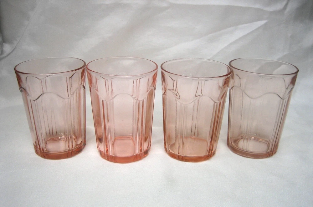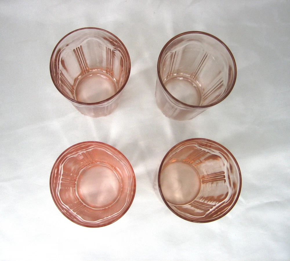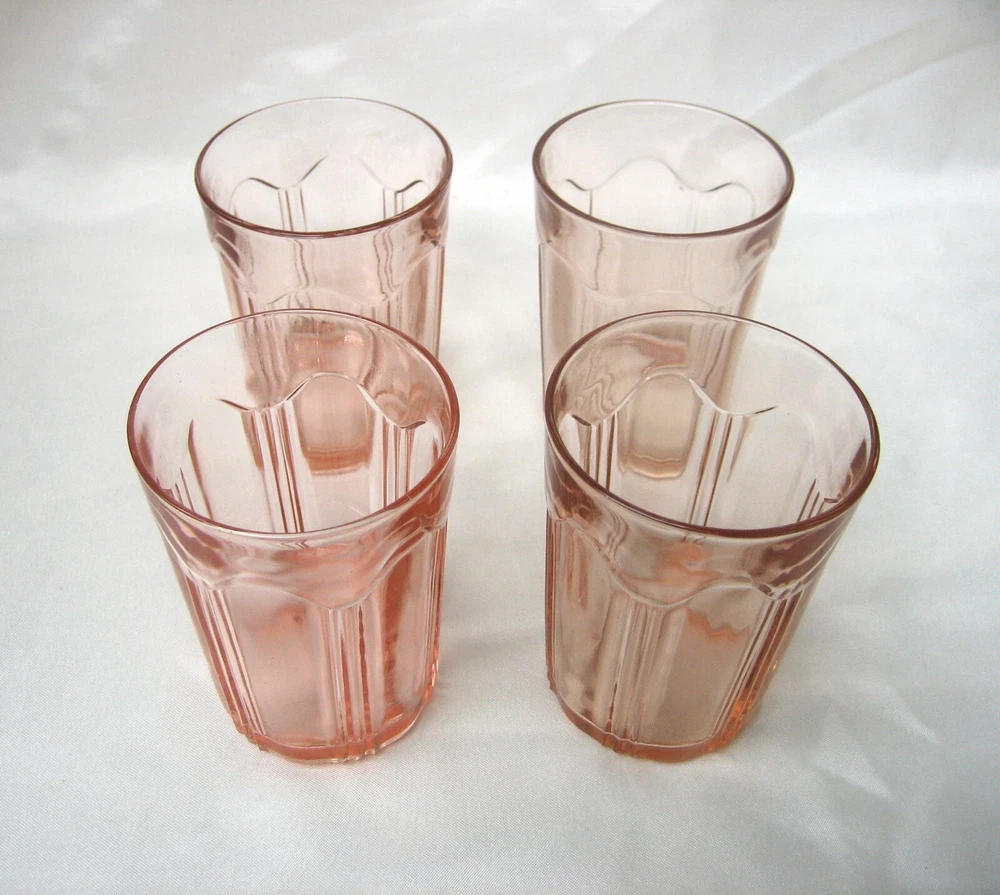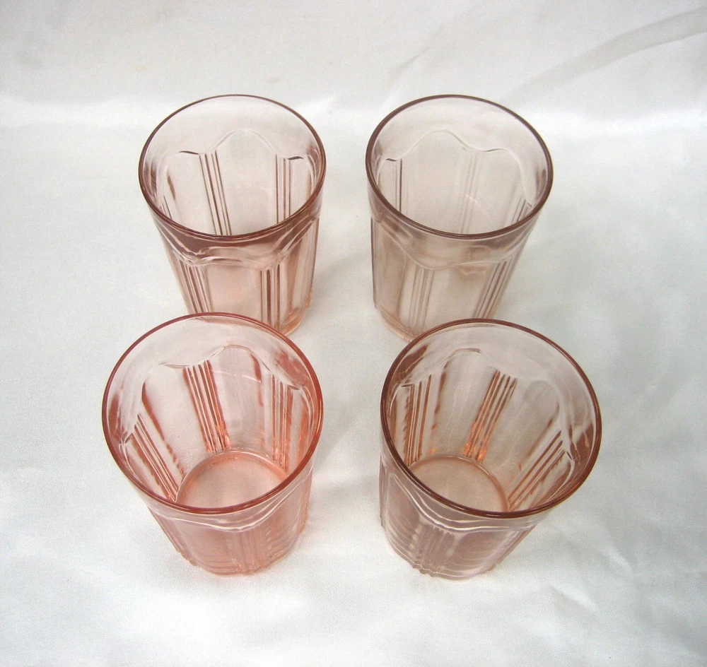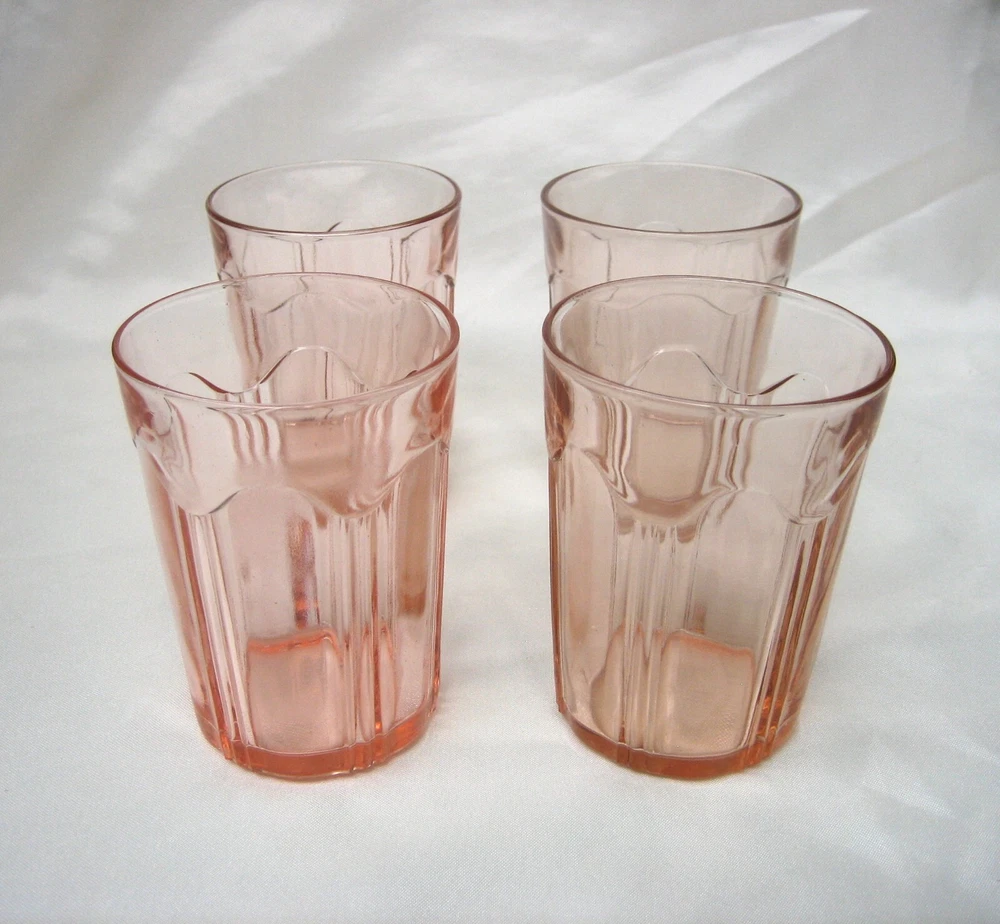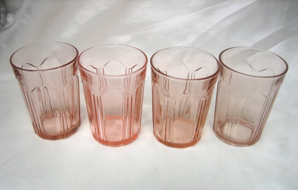 Here is a Lot of (4) Pink Depression Glass Colonial 'Knife and Fork' Water Tumblers, Produced by The Hocking Glass Co. from 1934-1936. Each glass stands 4" tall and 2-7/8" in diameter across the top rim. Pink depression glass with slight color variation as made at the factory. CONDITION: Very good to excellent, clean vintage condition free of chips or cracks. Please take the time and review all images, and if you have a minute check out my store for a few more items in this pattern. ~ TERMS AND CONDITIONS ~ THANK YOU FOR CHECKING OUT OUR LISTINGS.....PLEASE NOTE THAT WE DO NOT MAKE OFFERS....IF YOU ARE GENUINELY INTERESTED, REASONABLE OFFERS ARE CONSIDERED.....OFFERS OF MORE THAN 15% OFF ARE USUALLY NOT CONSIDERED REASONABLE..... WINNING BIDDER/BUYER TO PAY FOR USP S SHIPPING AND HANDLING .....IF YOU WISH TO ADD POSTAL INSURANCE, SIGNATURE CONFIRMATION OR WOULD LIKE YOUR ITEM DOUBLE-BOXED, PLEASE LET US KNOW BEFORE YOU COMPLETE CHECKOUT, SO THAT WE MAY ADD THESE ADDITIONAL COSTS TO YOUR INVOICE... ..ALL ITEMS ARE GUARANTEED TO BE AS DESCRIBED IN HONEST REPRESENTATION..... WE PROVIDE MANY PHOTOS AND STRIVE TO GIVE COMPLETE AND ACCURATE DESCRIPTIONS TO THE BEST OF OUR ABILITY ON ALL ITEMS.....WE ASK THAT YOU P LEASE TAKE THE TIME AND REVIEW ALL IMAGES AND READ THE DESCRIPTION CAREFULLY.....FEEDBACK IS RECIPROCAL....WE LEAVE FEEDBACK ONCE FEEDBACK HAS BEEN LEFT FOR US.