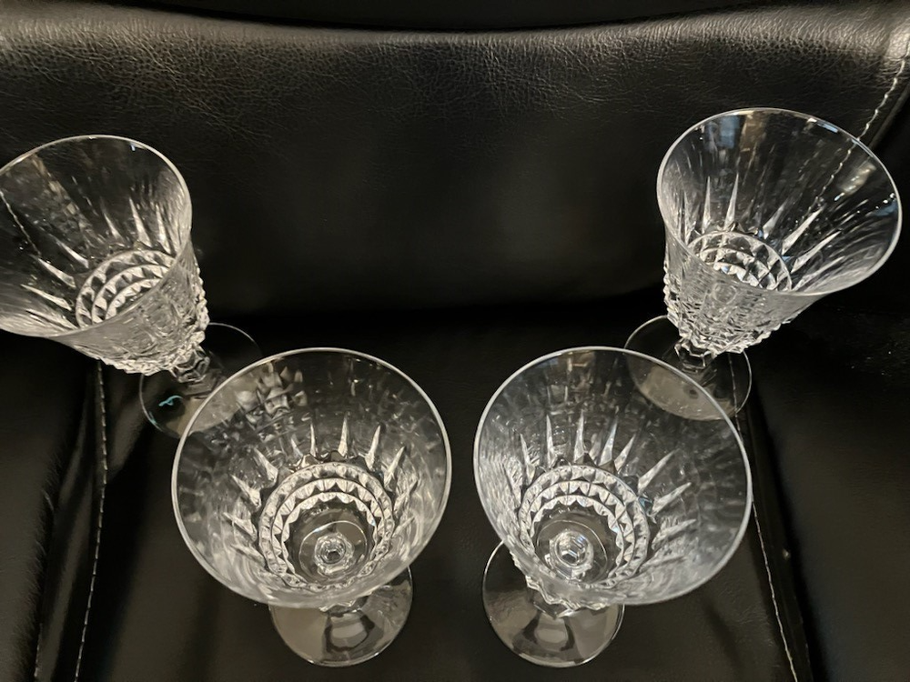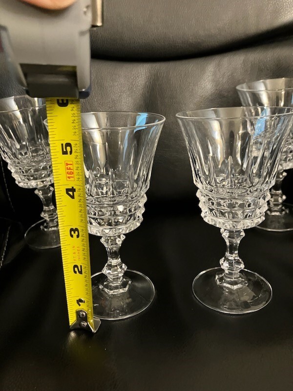 The product is a set of four Vintage Waterford Crystal Lismore Sherry Goblet Glasses measuring 5 1/8 inches in height. These elegant glasses are made of clear crystal and feature the classic Lismore pattern by Waterford. Perfect for serving sherry or other spirits, these vintage goblet glasses add a touch of sophistication to any drinkware collection.
