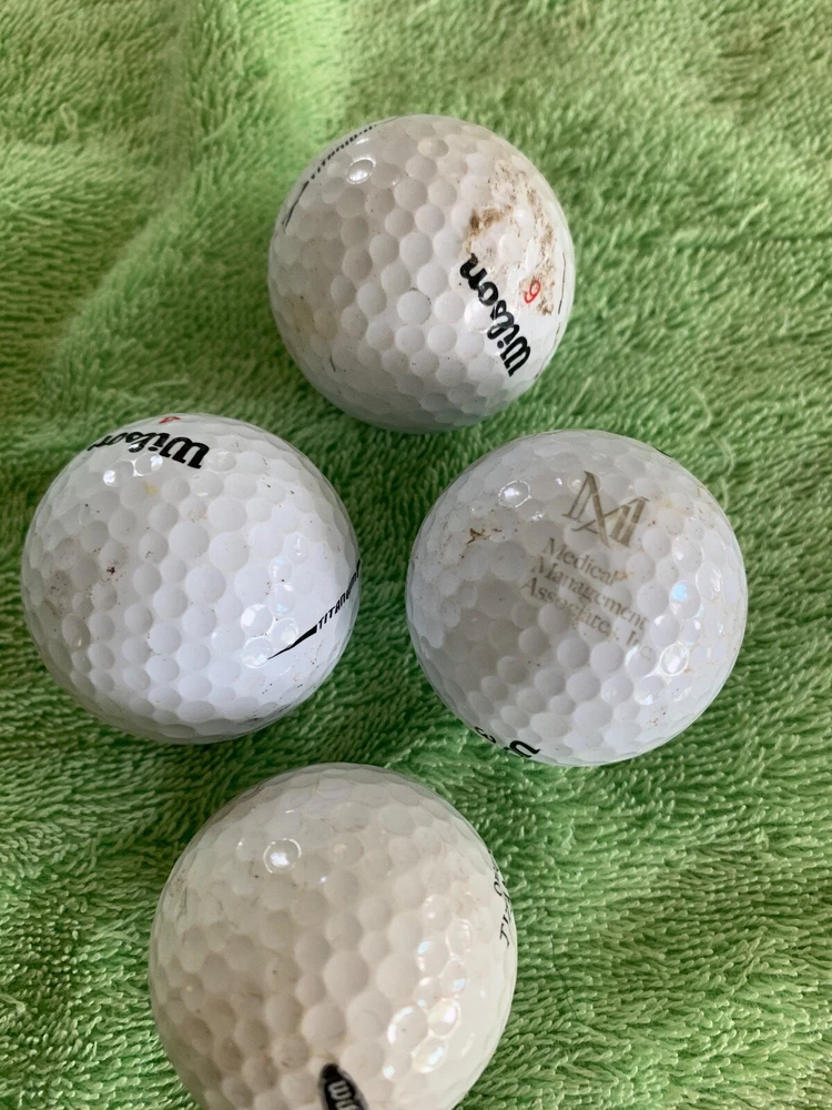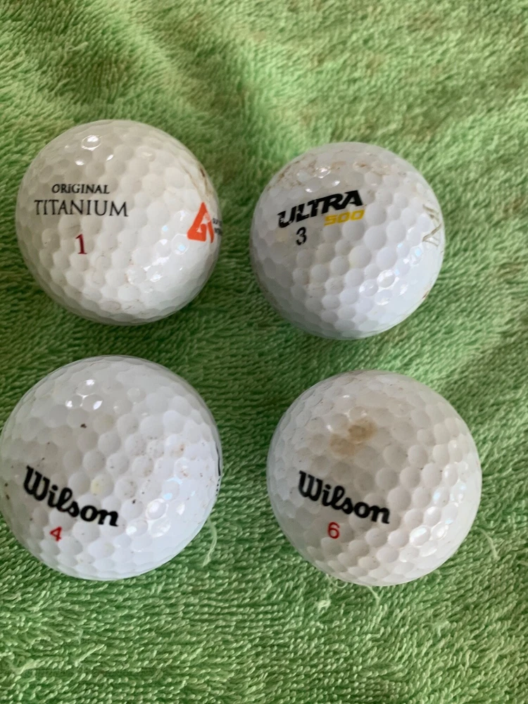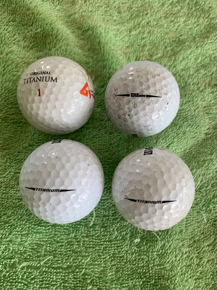 4 WILSON Golf Balls #1 #4 #6 ORIGINAL TITANIUM, #3 ULTRA MEDICAL MANAGEMENT LOGO