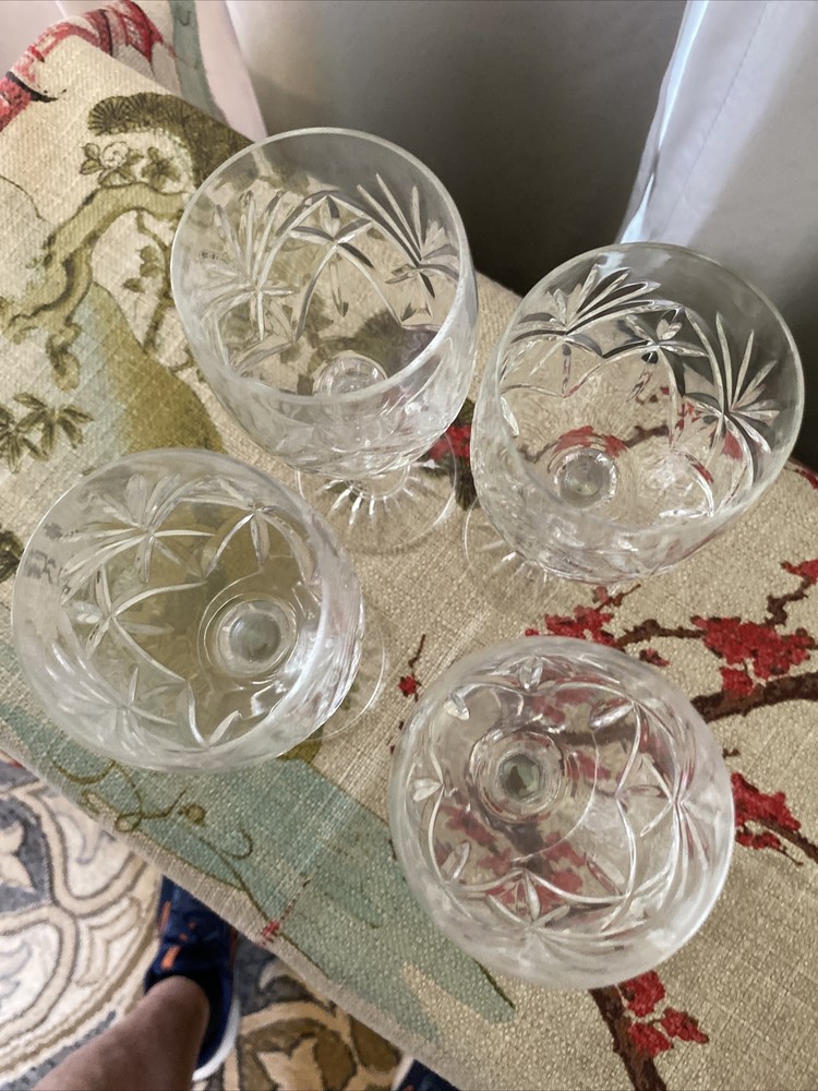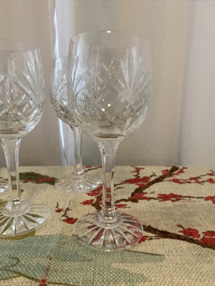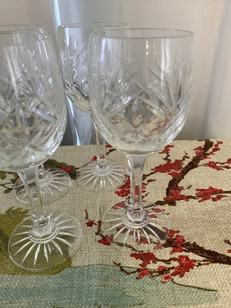 Elevate your drinking experience with this set of four exquisite Waterford Crystal Claret Goblet Wine Glasses. Crafted with elegant fused glass production technique, these goblets exude mid-century modern style and feature a beautiful waterford/waffle pattern. The clear crystal material adds a touch of sophistication to any occasion and the decorative design is sure to impress your guests. These original and licensed reproduction wine glasses are perfect for unisex adults who appreciate the finer things in life. The set includes four goblets, each measuring 7 inches in height. Whether you're hosting a dinner party or enjoying a glass of wine after a long day, these goblets are sure to impress. Add them to your collection today! Nice set of crystal!! Thanks for looking and have a great day!! Tb1