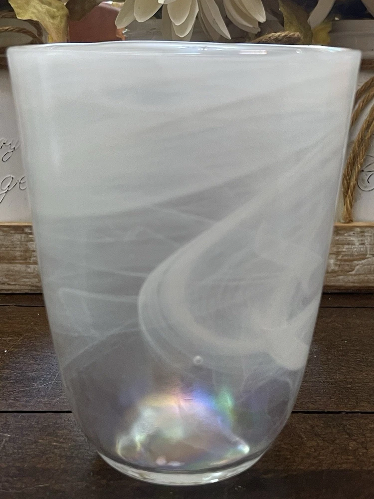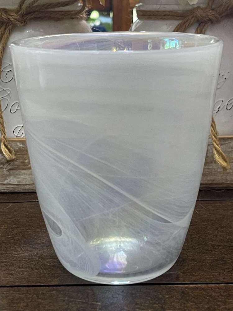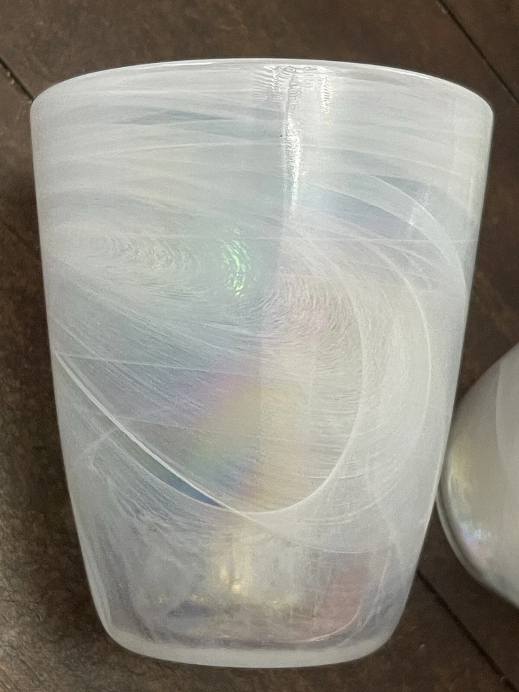 4 White Opal Iridescent Tumbler Glass Glasses 4.25” Very Heavy