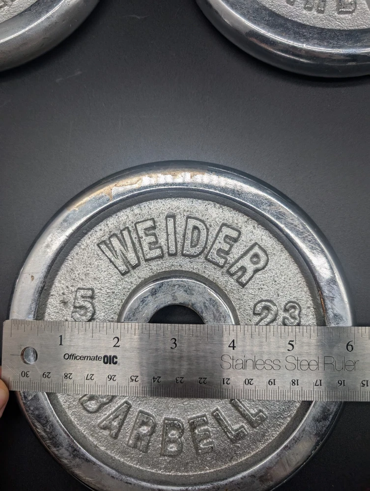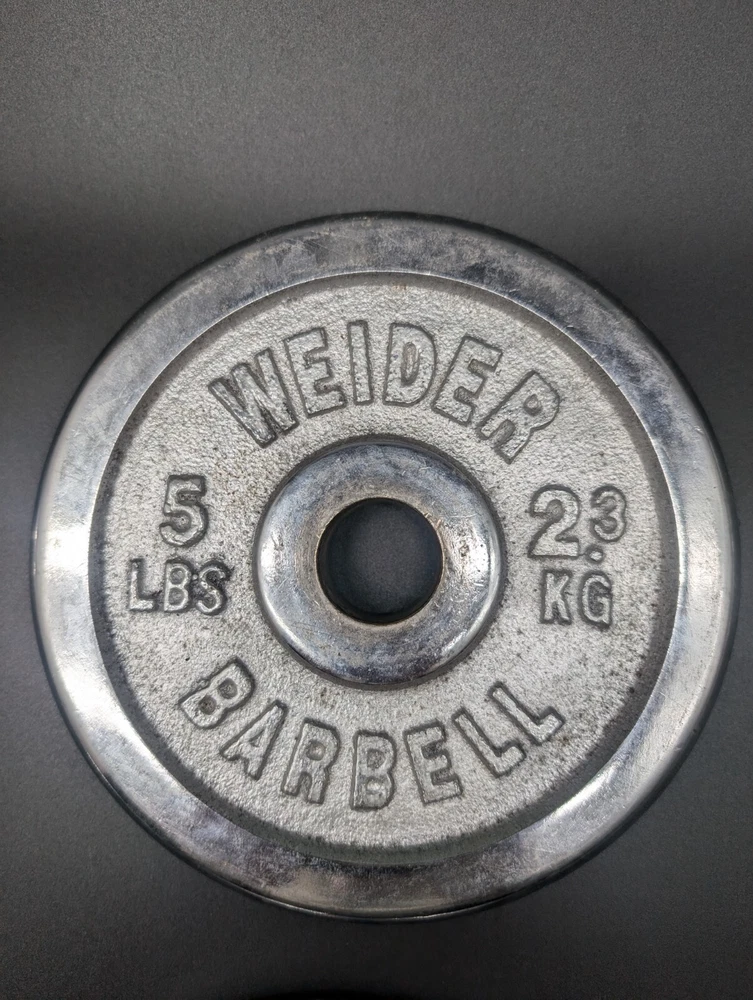 4 X 5 Lb Weider Weight Plates Chrome 1” Hole Standard Grip Total 20 Pounds VTG