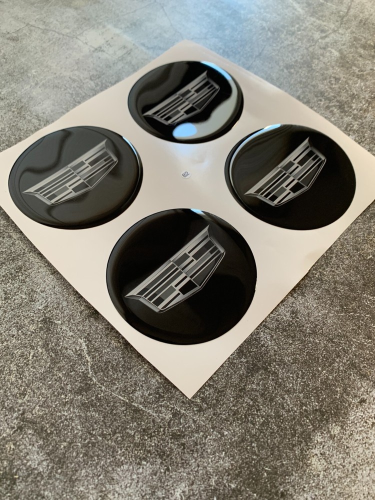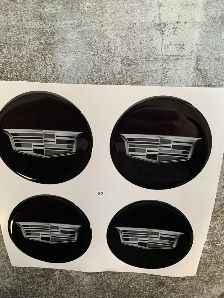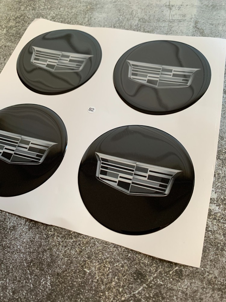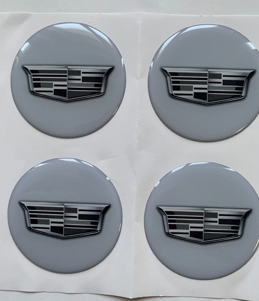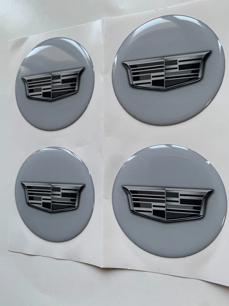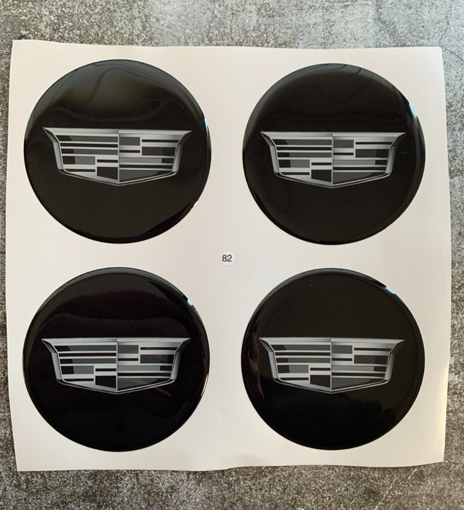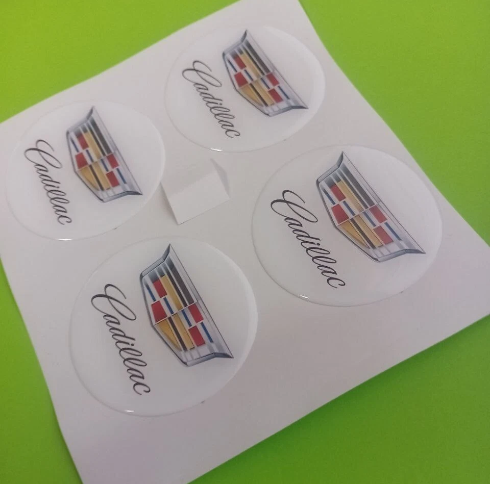 4 X All Sizes Silicone Sticker Cadillac For Wheel Center Hub caps Epoxy Decals