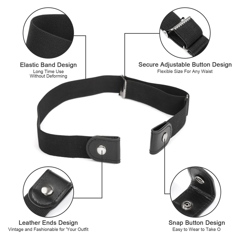 4 X Men Women Buckle-free Elastic Invisible Waist Belt for Jeans No Bulge Hassle Feature ☞Buckle Free Belt☜ - Unlike traditional belt, The belts without buckle, will not fiddle with the buckle any more when you put the buckless belt on your jeans. Makes your life more easier. Extremely easy to use! Enjoy Your Life, Save Your Time. ☞Invisible Belt☜ - No bulge, no hassle any more.The stretchy elastic no show belt lay flat under your shirt or jacket without any buckles digging into your stomach. Keeping far away from bulky buckle. No need to buckle and unbuck a belt when you go to bathroom. ☞Comfortable Elastic Belt☜ - No Buckle Stretch Belt is made of well-made elastic belt and quality leather. Snap on once, you will forget wearing a belt all day, bringing your a comfortable wearing feeling. It’s also a nice gift for the person who you concern. ☞Easy Use Belt☜ - Just snap the button one time, extremely easy to use. A bonus circular buckle gives you one more ways to match your jeans or dress.The flexible size belt up to 43” with a adjustable buckle, you can adjust a suitable size as your needs.The simple design with elastic band is perfect for maternity, men, children or people with special needs. ☞ Material☜ The leather material ensures a touch of security when you are wrapping the waist belt around your dress, jeans or pants. When not in use, you can roll it to take up less space. ☞Outstanding After-Sales Service☜- We aims to provide quality products and intimate service to you, we will answer you within 24 hours even on holiday if you have any problems or questions. We always stand behind our products, just feel free to purchase. Specification Size: For Waist Size 24" - 40" Type: Waist Belt Features: Elasticised/Stretch Color: Black Material: Genuine Leather, Canvas Width: Medium Package 4 PACK Waist Belt Delivery details Payment Terms of sales Feedback Contact us Delivery details 1. BUSINESS DAY MONDAY- FRIDAY FAST SHIPPING FROM USA. 2. All orders and payments received before 4PM EST (1PM PST) will be shipped the same business day. 3. No shipping on Saturday,Sunday or USA Public Holidays 4. No responsibility for any custom duty Payment We accept payment by PayPal only. Terms of sales 1. We offer a 60 day money back guarantee or exchange. 2. Buyer pays return shipping and we pay replacement shipping. 3. If you want to initiate a return,please contact us to get a returning address before sending the item back. Feedback 1. We strive to provide the best products and services. 2. Your positive feedback 5 stars DSR help us do better. 3. If anything about your transaction did not meet expectations, please CONTACT US and give us the opportunity to make things right. We are always here to help. Contact us Please do not hesitate to CONTACT US . You can message 24/7 on eBay for all questions and inquiries. We will get back to you within one business days at the latest from Monday- Friday.