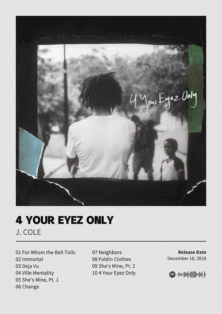 4 Your Eyez Only - J.Cole Album Poster 20x30” 24x36" Custom Music Canvas Poster