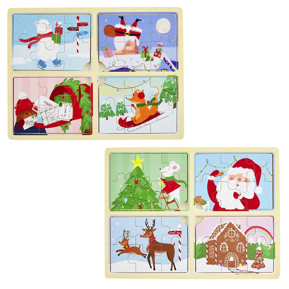 Our Santa 4 in 1 Puzzle is elf-approved. The wood puzzle comes with a large puzzle board. The puzzle comes with four individual wooden puzzles. The puzzle is intended for ages 18 months and older. The puzzle is made from mango wood. The puzzle makes a great gift for your little ones. We love to add this as a stocking stuffer for 18 months and older. The puzzle features four different Christmas puzzles. Our Santa 4 in 1 Puzzle is elf-approved. The wood puzzle comes with a large puzzle board. The puzzle comes with four individual wooden puzzles. The puzzle is intended for ages 18 months and older. The puzzle is made from mango wood. The puzzle makes a great gift for your little ones. The puzzle is intended for ages 18 months and older. The puzzle is made from mango wood. The puzzle makes a great gift for your little ones. The puzzle features four different Christmas puzzles.