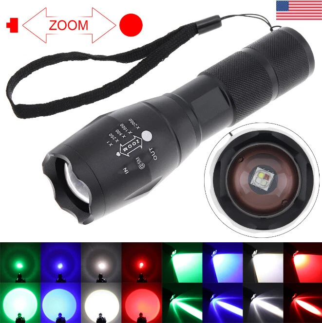 4 in 1 Multicolor Torch Red Green White UV Zoom Flashlight Hunting Light Battey