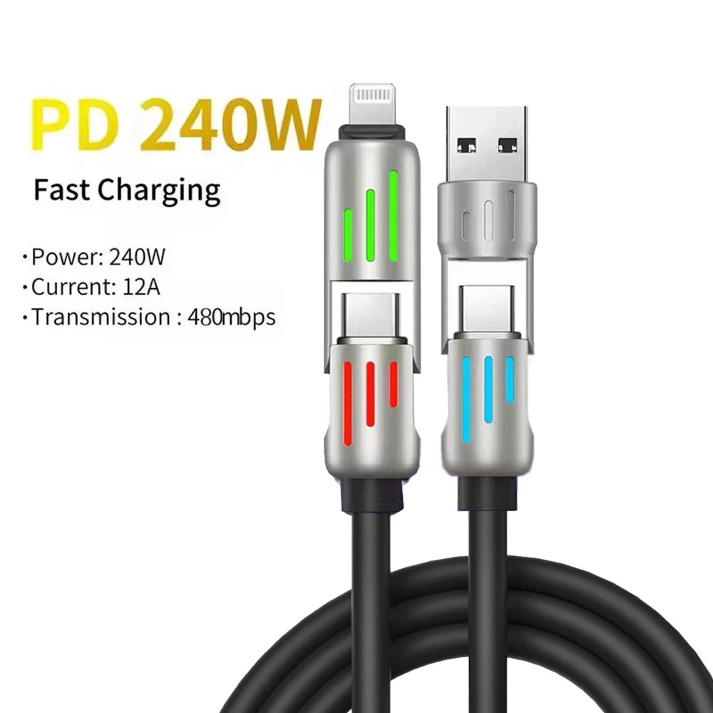 4 in 1 USB C Cable 240w Fast Charging & Data Sync Multi Silicone RGB Charge Cord