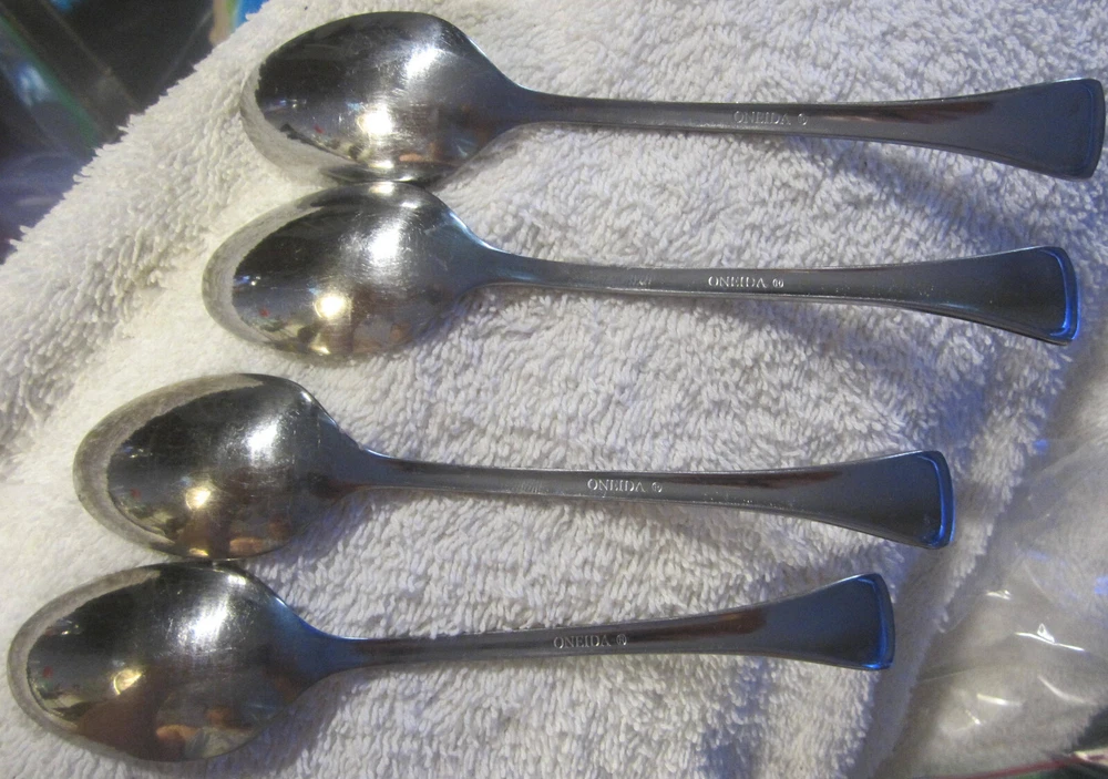 4 lot,set of Oneida Emma mirror Tea Spoon Stainless Flatware ,teaspoons,vtg