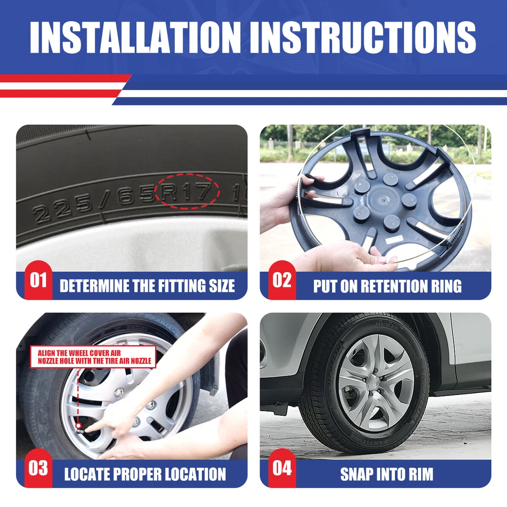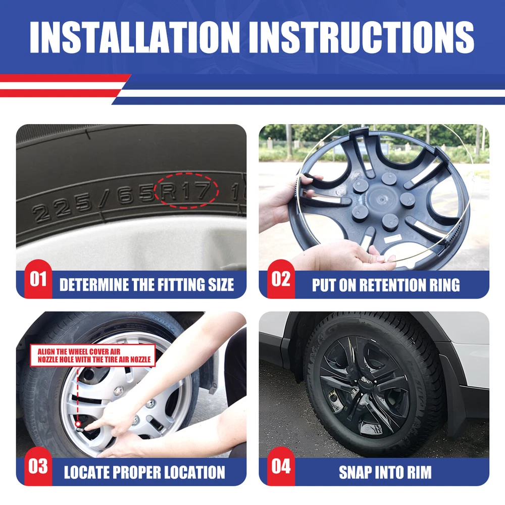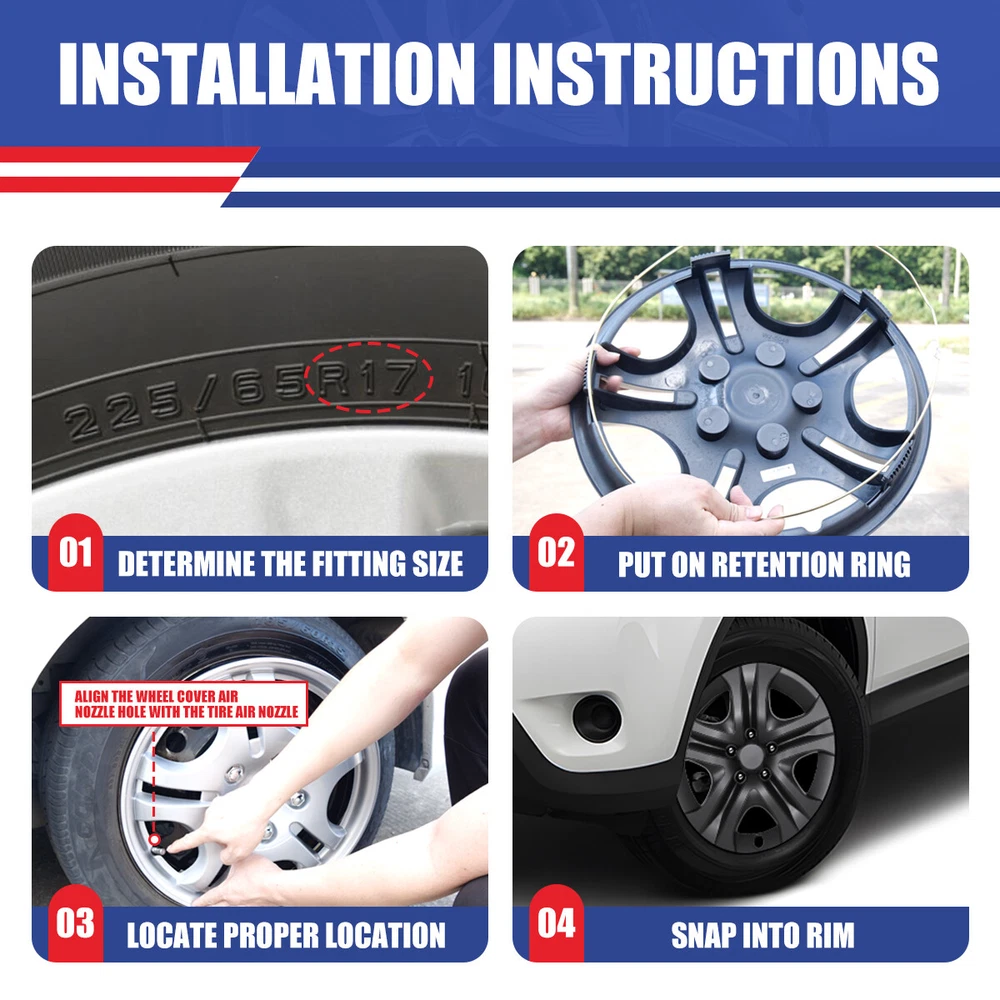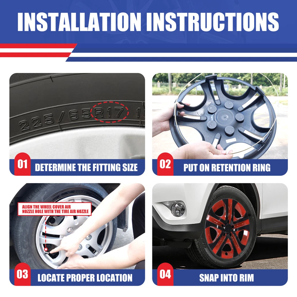 4 or 1 Pack 17" Wheel Covers Full Rim Snap On Hub Caps For 2013-2018 Toyota RAV4 Product Description 🚗🚗OUR Mission: It is to bring our customers safer, happier, more passionate auto parts and accessories. providing products including headlights, taillights, fog lights, auto rescue spare parts, etc. 🚚🚚Fast Delivery: we have a warehouse center in California, and all products sold are shipped from the California warehouse, so you don't have to worry about the delivery time anymore. 🌎🌎Guarantee: For incompatibility, or unusable due to defects, we provide 30-day refund or repalcement; For product malfunction, we provide 1 year warranty service. 💌✏️Message: If you have any questions about the product or have other questions, please contact us in time, we will try our best to help you solve it. 🌞Fitment : for 2013 2014 2015 2016 2017 2018 TOYOTA RAV4 NOTE--Not fit for 18 Spoke Steel Wheel Rims Set of 4 Specification: Type: Wheel Hub Cap Fits either LH (Driver Side) or RH (Passenger Side) Rear and Front Compatible Wheel Diameter: 17 inch Features:Car Wash Safe, Easy to Install, No Tools Required Material: PP Number in Pack: 4 OEM NO.: Steel Wheel: 42611-0R090; Wheel Cover: 42602-0R020 Placement on Vehicle: Front, Left, Rear, Right Installation Type: Snap-On About this item: 🚗Please Ensure to Check your Tire/Wheel Size Before Purchase! 🚗 Designed for 17” Wheels and will not fit over aluminum alloy wheels. 🚗100% Brand new in box. Unused, unopened, undamaged item in its original packaging 🚗Easy push on installation with no need for tools 🚗Stainless Steel retention ring for durability and maximum grip 🚗Designed with a tire steam cut out on the hubcap and retention ring 🚗Come in a complete set of 4 caps and 4 retention rings 🚗Easy to Install - Mount our car hub caps onto your wheels in just 10 minutes! 🚗Customize Your Ride - No need for a total overhaul to enhance your car's look! Conveniently replace run-down, aging or rusty car hubcaps with a stunning rim cover. 🚗Designed from OEM Replica Style Wheels– For Replacement with Fast & Easy Snap-on Installation - Made from Premium ABS Material – Lab & Road Tested for Performance and Ultimate Durability. 🚗Adjustable Retention Rings assures Firm Grip Gives Support to the Hubcaps Making Sure They Stay in Place. Locate the Curve on the Retention Ring and Match to the Tire Air Valve to Install. Package includes Silver-Set of 4-B 👉Package includes: One set of 4 Hub caps Black Lacquer-Set of 4-BL 👉Package includes: One set of 4 Hub caps Matte Black-Set of 4-BP 👉Package includes: One set of 4 Hub caps Silver & Black-Set of 4-DP 👉Package includes: One set of 4 Hub caps Black & Red-Set of 4-BRB 👉Package includes: One set of 4 Hub caps White & Black-Set of 4-BW 👉Package includes: One set of 4 Hub caps Silver & Black-1 Piece Only Specification: Type: Wheel Hub Cap Material: PP Number in Pack: 1 【1 Piece Only】 Installation Type: Snap-On Compatible Wheel Diameter: 17 inch Color:As Show Features:Car Wash Safe, Easy to Install, No Tools Required OEM NO.: Steel Wheel: 42611-0R090; Wheel Cover: 42602-0R020 Silver & Black-1 Piece Only 👉Package includes: One Piece Hub cap Payment Delivery details Shipping About us Contact us Payment We accept Paypal And other ways . As an official payment method approved by eBay, it is convenient and fast. - International Buyers are responsible for any customs and duties fees for their country. Delivery details All items will be shipped within 1-3 business day after payment received. We will try our best to ship out as soon as we can, hope for your understanding. Please double confirm your address and contact information, which will help the delivery faster. Shipping Orders placed before 2 PM PST will be processed the same day. All orders after 2 PM PST will be processed the following business day. We ship our packages out via USPS OR FEDEX for most customers 【Unable to ship P.O.Box address, please do not provide P.O.Box address】. Tracking numbers are provided within the following business day. About us AUTOFREE_OFFROAD with the goal to provide products to consumers at an affordable price while providing excellent customer service. We are located in Southern California. Brand: Ford, Chevy, Dodge, Toyota, Jeep, Nissan, Honda Etc We specialize in the design and production of automotive lamps. Headlights, tail lights, fog lights, Jeep exterior parts Etc. welcome to enter the my store to buy ! ! ! If you are satisfied with our product and service please kindly leave a positive feedback. If you are not satisfied, please contact us through eBay first, and do not directly give us negative feedback. We will solve the problem for you as soon as possible. Contact us We are located in City of Industry, California and provide parts nationwide. We mainly sell Headlights, tail lights, fog lights, Jeep exterior parts Etc. CONFIDENCE:We are not only a seller, but also the manufacturer of vehicle lights for many years.If you are not satisfied in warranty time,we will offer the solution plan Material PP Placement on Vehicle Front, Left, Rear, Right Type Hub Cap Number in Pack 4 OR 1 Model 17 in Universal Hubcap for Iron Wheels Features Easy to Install, Lightweight, No Tools Required, Unique design Country/Region of Manufacture United States Finish Glossy Compatible Wheel Diameter 17 in Installation Type Snap-On Universal Fitment No Manufacturer Warranty 1 Year Brand autofree-offroad OEM NO.: 42602-0R020 Silver & Black-1 Piece Only 👉Package includes: One Piece Hub cap International Buyers Note Responsible for any customs and duties fees for their country Fitment FOR 2013-2018 Toyota Rav4 product Color as show PLS NOTE Not fit for winter wheel rims NOTE-- Not fit for 18 Spoke Steel Wheel Rims