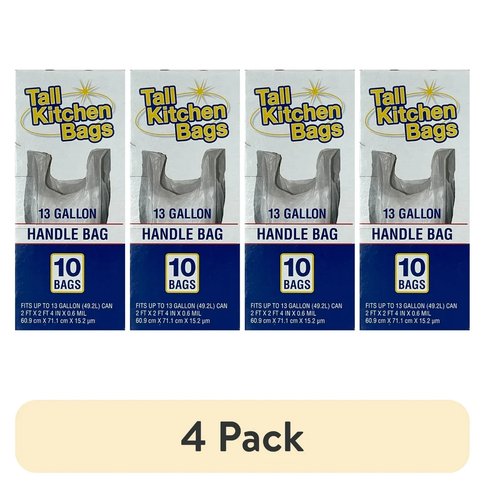About this item 10 count 13 gallon Convenient handle closure Affordable Tall trash bags Ideal and convenient for everyday household use Made from LDPE plastic Come in an easy-to-open cardboard box
