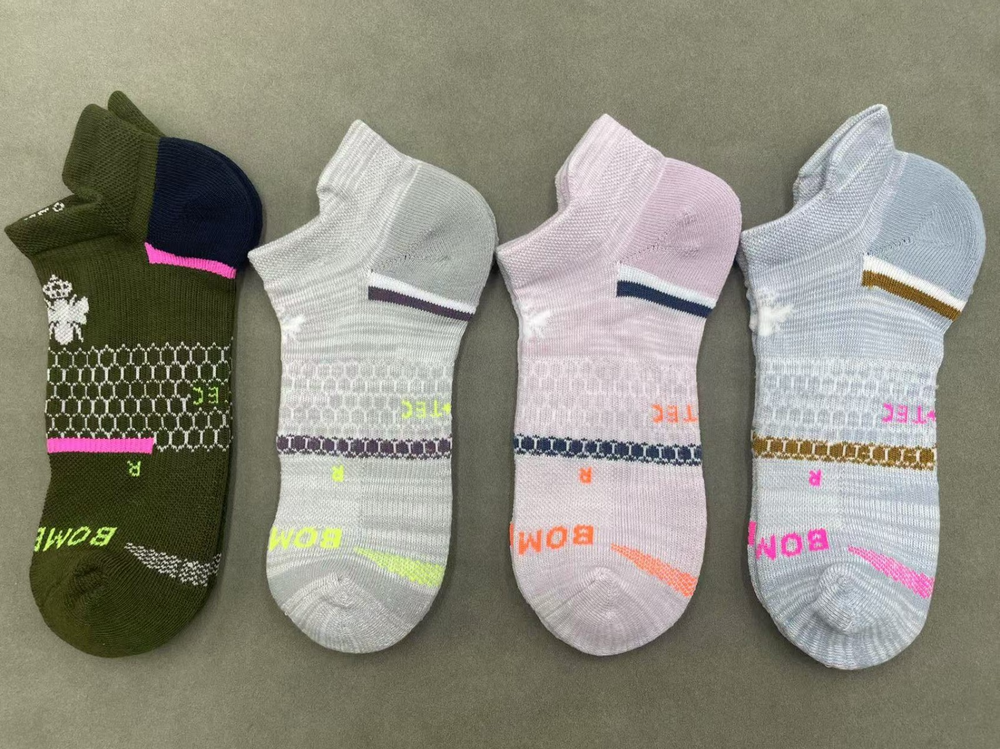 4 pairs BOMBAS Women's All-Purpose Performance Ankle socks Size Medium 4 Colors The more Bombas in your sock drawer, the happier your feet will be. The happier your feet are, the happier you will be. That’s just science. Features Extra-Long Staple Cotton Cushioned Footbed Honeycomb Arch Support System Blister Tab Y-Stitched Heel Seamless Toe Materials & Care Machine wash cold on gentle cycle, do not bleach, tumble dry low, do not dry clean or iron.