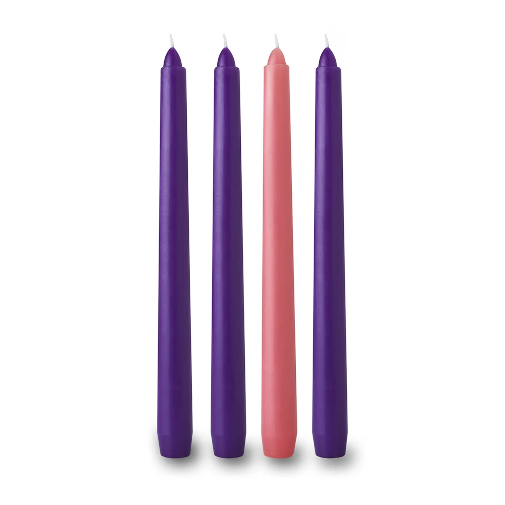 4 pc Christmas Advent Taper Candles- 10-inch x 0.75 (3/4)inch-3 Purple & 1 Pink