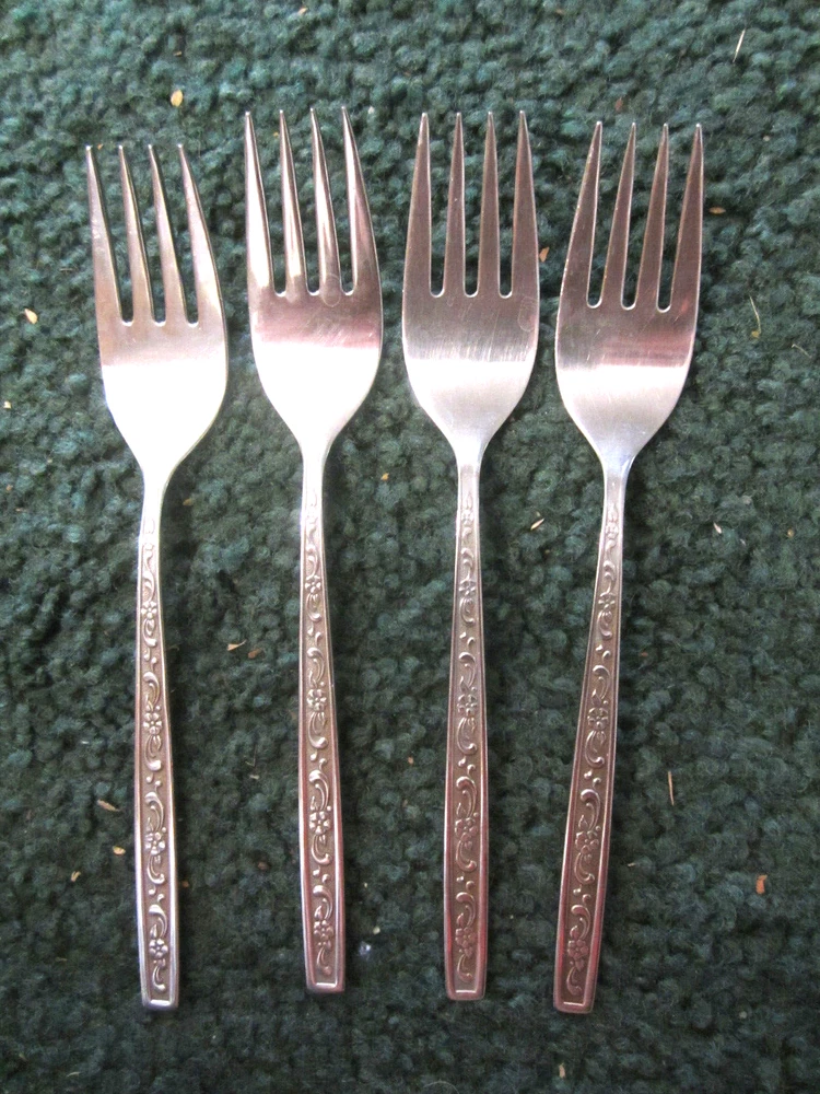 4 salad forks,West Bend Fernwood VTG Stainless Flatware USA,6 3/16",set lot