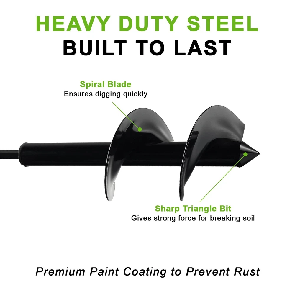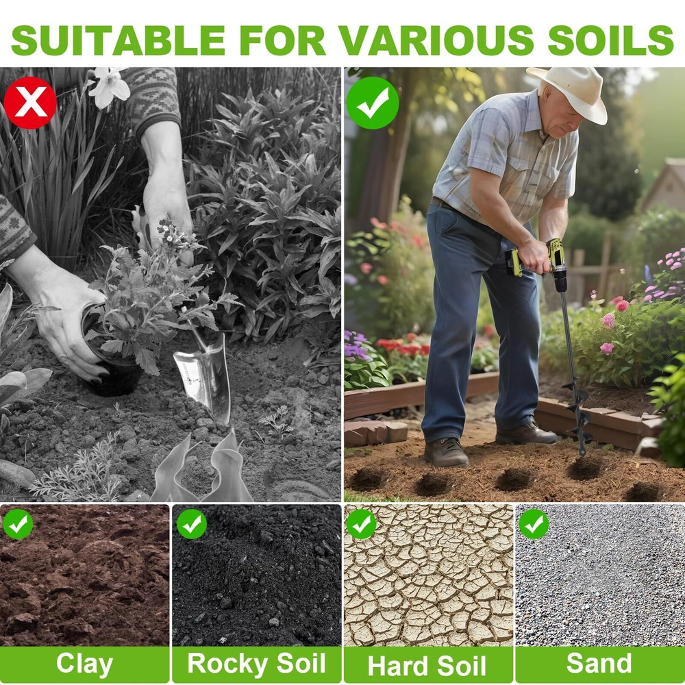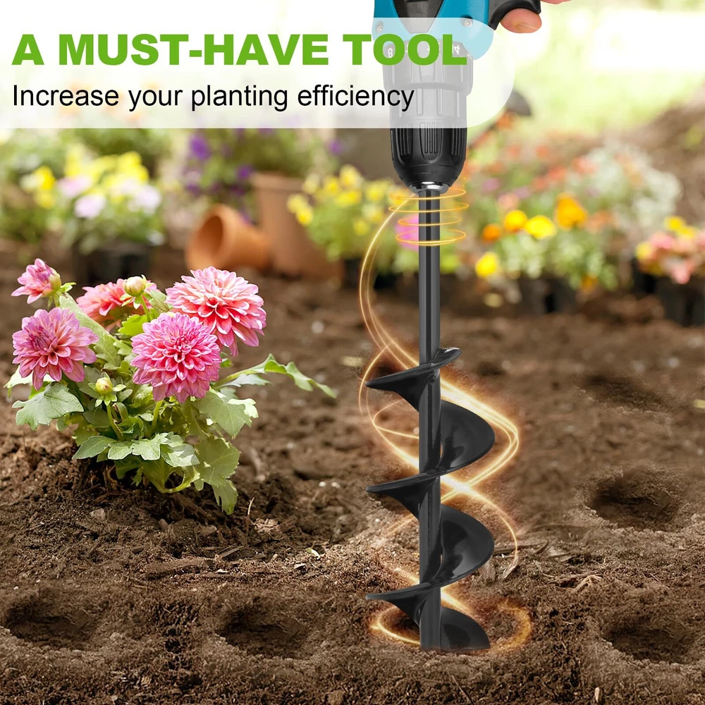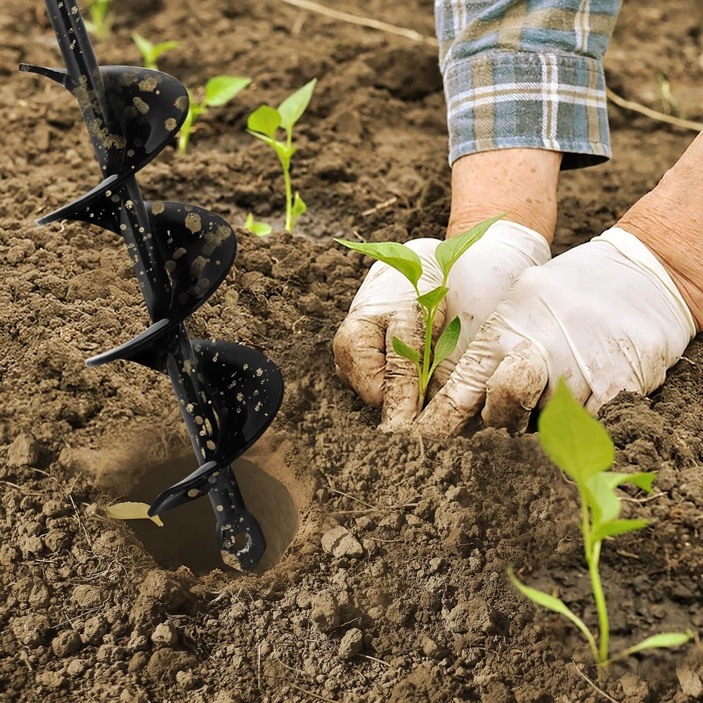 【High Efficiency】Our auger drill bit designed with upgraded bit, ensures digging holes quickly and increase the planting efficiency. The garden auger drill bit for planting can save your time and energy, enjoy your planting time! 【Size & High Quality】Auger bit size: 4"(D) x 12"(L), ideal for digging holes in your garden. The garden auger drill bit made of heavy duty steel with black paint coated, won't rust or bend and can work on loose soil, hard ground, sand, clay, even ice. 【Easy to Use & Warm Reminder】The post hole digger fits any 3/8” hex drive drill. 18V or larger drill recommended. Hold with both hands, then turn it on to dig downward. Reverse the drill to pull the soil back up, and you get the perfect posthole. Keep the auger clean from soil or debris and keep dry when not in use. 【Wide Application】The drill auger for planting is perfect for planting bulbs, bedding plants, and suitable for tilling soil, mixing seed, soil, fertilizer, paint and so on. Not only for garden works, but also for easily digging holes for fenceposts, ground lights, outdoor tents, beach umbrella in the sand. Very useful auger drill bit! 【Best Gift & 100% Satisfaction Guarantee】The garden auger is the best gift idea for mother, father, and friends who loves gardening work. The auger drill bit can help them dig holes and plant more in less time. If you are not satisfied with our product for any reason, we offer 100% refund or replacement.