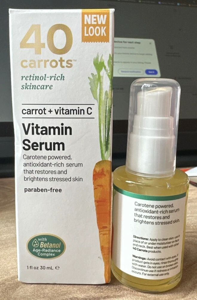 40 CARROTS+ CARROT + VITAMIN C VITAMIN SERUM 1 OZ NIB Please see all photos and read description items as is no returns. Please feel free to reach out with any questions! ***Sealed items***Sealed never used, sometimes seal is weak and comes up when opening to remove the seal or seal could be missing, rest assured its never been used. ******* *May not have a seal/weak seal, Item is new and unused I assure you item will be tightly and carefully packaged when shipped to avoid mishaps. MAKE OFFERS! :) *i do sometimes test a product if it had a sprayer or a twister just to make sure the item is in great working order so you receive a useable item you?ve been searching and missing! however things can be overlooked, so please do not hesitate to reach out to me with any questions on an item or a specific photo, i do have a disclaimer on all items in my shop as i moved across the country and some items have blemishes or are now missing a box or the box is distressed or cap.