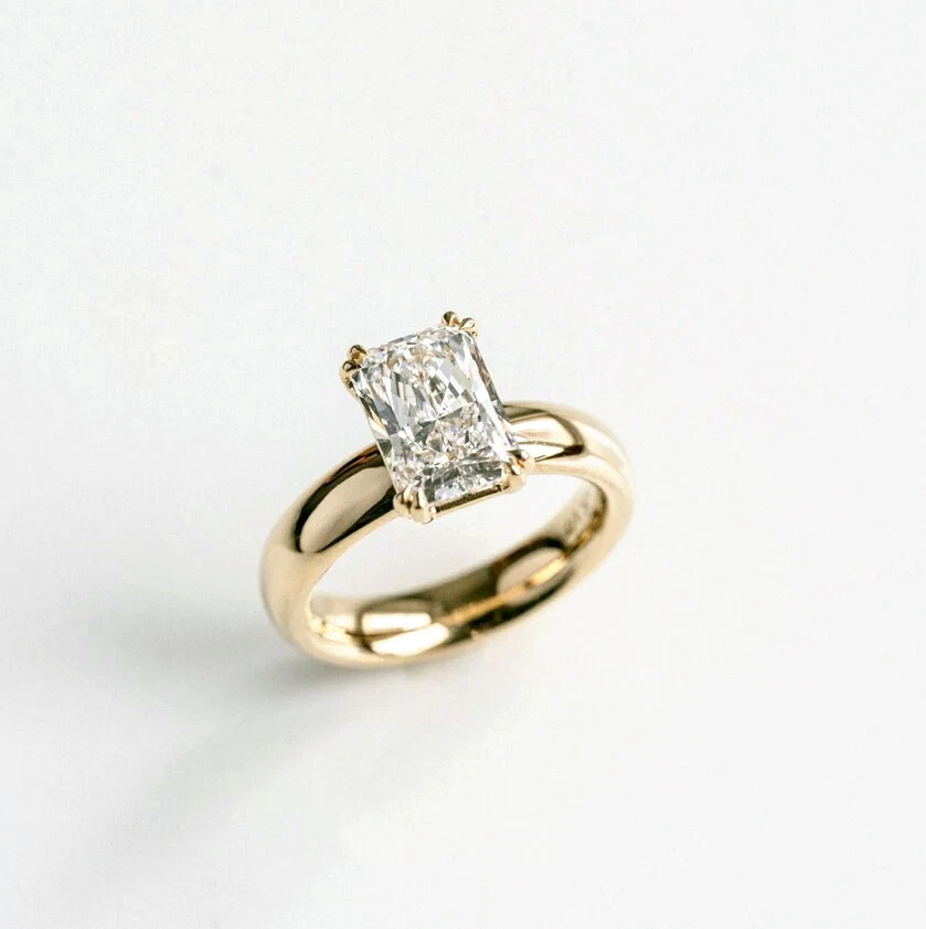 This stunning 14K yellow gold plated solitaire ring showcases a breathtaking Radiant cut moissanite, a gemstone renowned for its exceptional brilliance and fire. The clean lines and classic design of this ring exude timeless elegance. ELEGANT LOOK! GREAT SHINE! Stone Color - White Shape of Stone- Radiant cut Approx. Weight of Stone-3.80-4.0 Carat Cut - Excellent Metal - Stamped sterling silver Size of Ring – US7 This ring is handcrafted with utmost care. Would make an ideal gift for someone special. The stone has excellent cut and luster. Comes in attractive packaging. CERTIFICATE OF AUTHENTICITY PROVIDED Shipping : Shipping is by UPS/SPEEDPOST/FEDEX or similar shipping agencies to reach you in 9-12 business days after processing the order. Tracking is provided. Please note: Jewelry items can take up to 10-12 business days to process to take care of ring sizing if any, polishing, finishing, packing and handling, certification, documentation etc. Shipping Charges include eBay fees on Shipping, packaging, certification costs, manpower costs, overheads, taxes etc. in addition to actual courier/postal expenses which have increased substantially as a result of pandemic & global economic conditions. We do not artificially increase the price of the products to include shipping charges but only charge what shipping actually costs us. Combined Shipping: Combined shipping discount is available up to 5 (Five)items in an order to be purchased within 5 days. You can continue to buy- Any additional items above 5 in quantity will be considered a new order. This is to avoid pilferage en-route as well as to ensure that you are happy with the merchandise. Once you have received their items you may buy additional items again. This limit may be revised for repeat and regular customers. Payment: Buyers are requested to pay within 3 (Three) days of purchases. eBay will automatically open unpaid item cases in case payment is not received within this period. The item will also be available for purchase to other buyers till such time that the payment is received. Customs and Taxes: Any customs duties, charges and local taxes are subject to local laws and vary from country to country and hence the payment of any eventual custom duties, charges, levies and taxes etc will be at the buyer's expense. We do not have any control on the same. Returns & Refunds: You can return the item within 14 days of receiving the parcel. - Please return in original packing. Buyers are required to check and ensure that the item/s are in good condition and as per item listing on eBay as no claims for returns and refunds will be entertained thereafter. The returned item should be unused and in original and undamaged condition. Buyer will be required to ensure that the item is sent by trackable shipper. Shipping charges are non-refundable. Refunds are made by PayPal and may take up to 5-7days after receiving back the product/s. Disputes: We aim to settle all disputes amicably. Please do not open any dispute on eBay for dis-satisfaction or for non-receipt or to return an item. We are available through ebay messages system and most messages are replied in a few hours. Personalized satisfaction is of utmost importance to us. Feedback: We always provide excellent feedback to our buyers and expect the same in return with 5-star ratings. In case of any dissatisfaction or any other reason please do contact us before leaving any neutral or negative feedback - we will strive our best to resolve all issues to your satisfaction. Metal: Silver is 925 Sterling Silver with Nickel Free Rhodium Plating. Please refrain from buying if you have allergic reaction to metals. We will not be responsible for any health problems in this regard. Legal Disclaimer: Refund or any claim liability for the buyer is only limited to the value of the item purchased. No additional claims will be entertained for any other reason whatsoever. Please note that since various labs may have different testing methods and the interpretation of all our Diamonds and Stones may differ from one lab to another as well as from one Gemologist, appraiser and Jeweler to another, we will be unable to accept another Lab Certificate or the judgement of any other third party including any Gemologist, appraiser, Lab, Jeweler etc. By consenting to buy our items it is understood that you have read, understood and agree to the terms and conditions as well as the FAQ for the Diamonds and Jewelry being sold buys. What Guarantee do you offer? We offer full100% Money Back Guaranteed in case of any manufacturing defect. Please also refer to the Refund Policy as mentioned our item listing.
