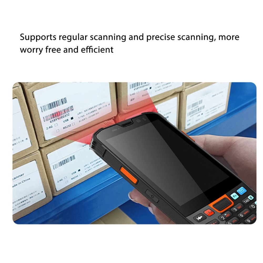 QR Bar Code Reader 4.0 Inch Screen Handhled 1D 2D Barcode Scanner Data Collector Features 1、For Android 11 Operating System: The barcode scanner data collector is equipped with the latest for Android 11 operating system, allowing employees to quickly scan barcodes and perform multiple tasks simultaneously, enhancing efficiency and productivity in various work environments. 2、Robust And Sturdy Design: Designed to withstand challenging conditions, this handheld data terminal boasts an IP67 water proof rating and is capable of withstanding drops from heights of up to 1.5 meters (59 inches), ensuring reliability and durability for indoor and outdoor operating across industrial, logistics, transportation, and inventory management settings. 3、Stable Data Transfer: With fast 4G, WiFi, and Bluetooth functionalities, seamless real time data transfer and monitoring are achievable, enabling continuous workflow indoors and outdoors for enhanced work flexibility and productivity. 4、Fast And Accurate Scanning Engine: The handheld barcode scanner features a scanning engine that can swiftly and accurately scan various 1D and 2D barcode formats, ensuring efficient and no error data catching in applications. 5、Wide Application: Suitable for multiple industries including warehousing, logistics, retail chains, apparel, ticketing, distribution, power meter reading, manufacturing and others, the QR bar code reader meets the diverse needs of industry users with its versatile features and good performance, making it an essential tool for efficient operating and inventory management. Specification Item Type: Handheld Barcode Scanner Material: ABS Processor: 8 Core 2.0GHz Screen: 4.0 Inch Scanning Mode: 1D, 2D Scanning Scanning Engine: 1 Million Global Storage: 3GB+32GB (Memory Card Not Included) Battery: Li Battery 5000mAh x 1 (Included) Communicating: 4G, WiFi, Bluetooth Barcode Data Sending Method: Input Box, Simulate Key (Not Support Chinese), Broadcast, Clipboard, Input Box and Broadcast, SDK Package List 1 x Scanner 1 x Data Cable 1 x Battery 1 x Accessories