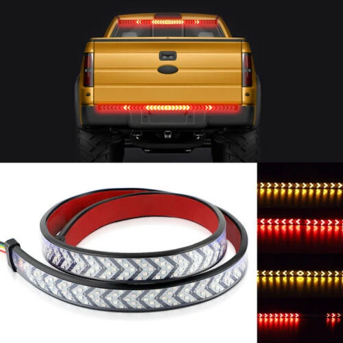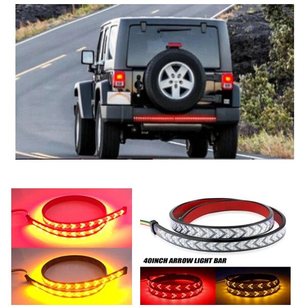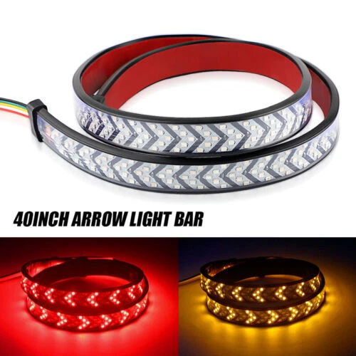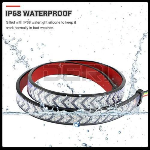 40" Inch LED Sequential Brake Signal Tail Reverse Light Bar Truck Tailgate Strip Specificatio ns: Use voltage: DC1 2V LED Light Source: 360 LEDs Lamp type: 2835 light source Shell material: PVC Waterproof Rate: IP68 Detail Size: Please check the size picture before ordering. Light length:40inch / approx. 100cm Multi-Function: See pictures for details Features: FULL FUNCTIONS: The arrow style tailgate light features full functions of brake, flowing turn signal, double flash, running and reverse light. BRIGHT LIGHTS: With 360pcs 2835 SMD led chips gives out the super bright beam. Adds clear visibility to the rear drivers, better ensuring safety trafic on roads! PREMIUM QUALITY: Adopts fully sealed silicone housing with IP68 waterproof rate, works good whatever in rainy or snowy days. With inline fuse for short circuit protection, heavy duty and super durable. QUICK INSTALLATION: No need to drill for installation. self-adhesive tape, can be easily stuck on any smooth surface, simple installation without screws required. UNIVERSAL FITMENT: This flexible light strip features 40 inch long, perfect for most Pickup, Trucks, Trailers, Cars, SUV, RV, VAN, etc. Package Included: 1X 40inch Truck Tailgate LED Tail Light Bar At last but no the least: 1.If you have any fruther question,please feel free to contact with us. 2.Do not leave any negative or netural feedback before contact us , we will try our best solve your problem and make you 100% satisfaction,thank you.