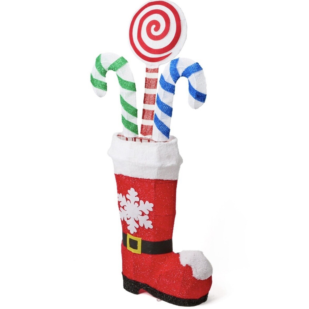 40 Inch Santa Boot Candy Canes Yard Art Pre Lit Outdoor Christmas Decor Snow NEW