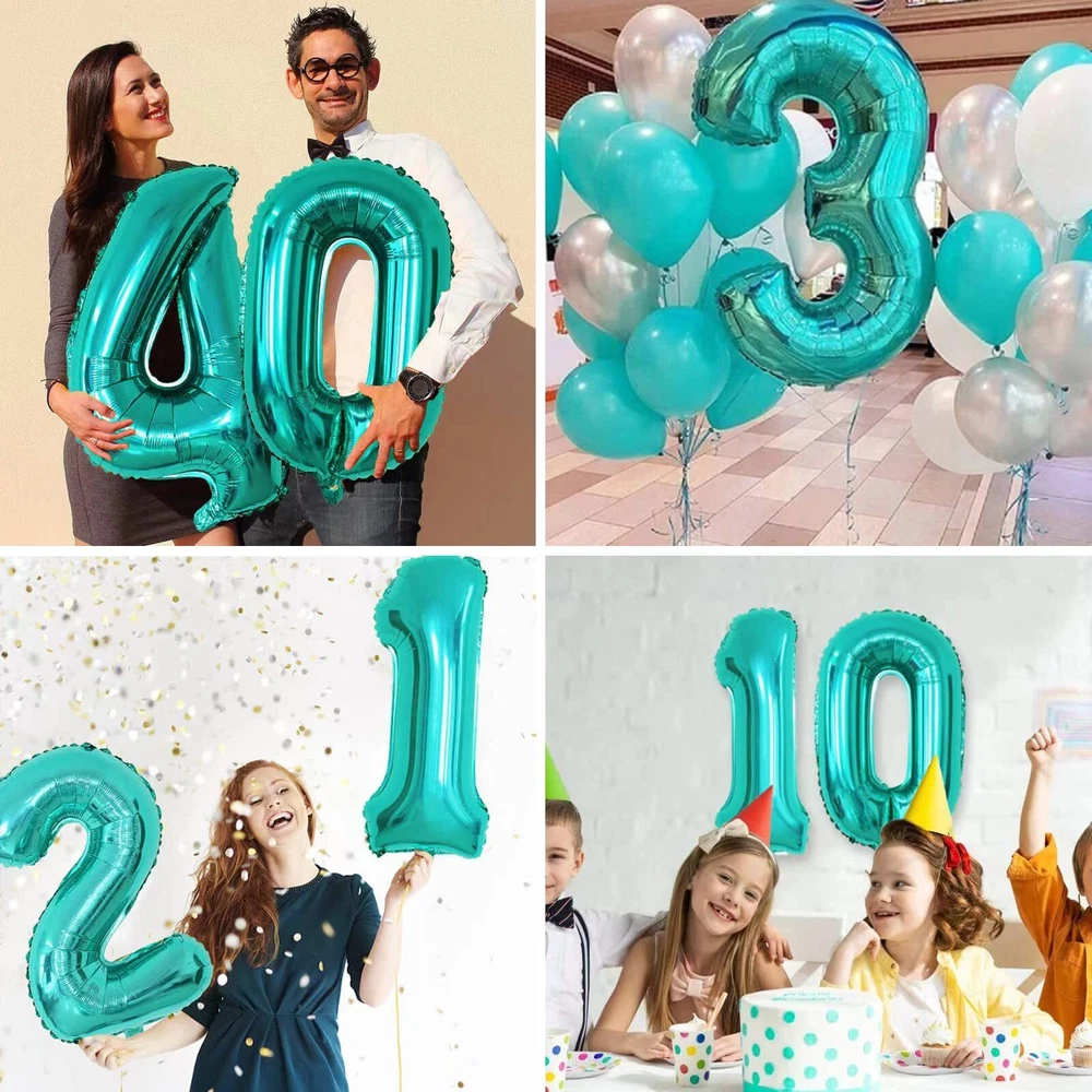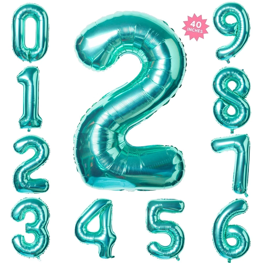 40 Inch Teal Blue Jumbo Digital Number Balloons 2 Huge Giant Balloons Foil My...