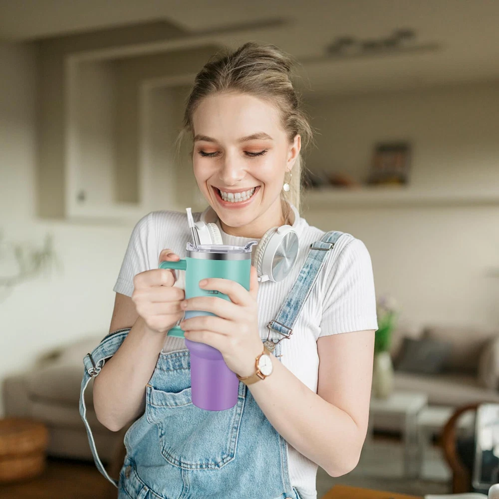 40 oz Tumbler with Handle and Straw Lid, 100% Leak-proof Travel Coffee Mug, Stainless Steel Insulated Cup for Hot Cold Beverages, Keeps Cold for 34Hrs or Hot for 10Hrs, Dishwasher Safe (GreenPurple) 【100% Leak-Proof Lid】Soufull Tumbler adopts newly upgraded 3in1 MagSlider lid and double-threaded twisting design, keeps the cup completely sealed and sweat proof. It is easy to handle the shakes and bumps of sports or car travel, enjoy the joy of drinking to your heart's content! 【Double Wall Vacuum Insulation】Soufull 40 oz tumbler made with double wall vacuum insulation and 304 stainless steel, which keeps beverages cold for up to 34 hours and hot for up to 10 hours. It means the insulated tumbler cup keeps your favorite drinks ice cold or piping hot for hours. Let you enjoy hot and iced drinks until the last sip. 【Portable Super Capacity Travel Cup】 This large tumbler can be safely placed in most car cup holders, no worries when traveling far. Tumbler also has a humanized design silicone sleeve straw and handle, easy to drink directly or through a straw, on-the-go hydration! 【Dishwasher Safe, BPA Free】Electro-Polished interior will ensure bottle remain pure, high-quality and sturdy material makes bottle dishwasher safe, freeing your hands! Bottle is BPA free and odor free, great for any beer, water, soda, milk, iced coffee, tea, mixed drinks, or even a smoothie, any drink you want. 【100% Customer Satisfaction】The high quality modern design of insulated travel mug makes it a must have accessories for each family, which is very suitable for outdoor gatherings or comfortable nights at home. If the Soufull products had any quality problem, Please contact us without hesitation. SHIPPING - We offer FREE shipping on all orders! - We ship within 3 business days of payment, usually sooner - We use a selection of shipping services such as UPS, FedEx, USPS etc - We only ship to the lower 48 states, no APO/FPO addresses or PO Boxes allowed International buyers – please note: Import duties, taxes, and charges aren't included in the item price or postage cost. These charges are the buyer's responsibility. - Please check with your country's customs office to determine what these additional costs will be prior to bidding or buying. - We have confidence in our products, but if you are not fully satisfied please contact us within 30 days of purchase and you will get full refund. * Order Cancellation Policy ** You can return a product for up to 30 days from the date you purchased it. 1. The seller reserves the right to cancel the special case only due to eBay cancellation fee. 2. The decision of seller is the final. 3. The seller will respond to the cancellation request within 2 business days. Please wait for the result of cancellation. 4. In case the cancellation is not completed by some reasons, the buyer can follow the options below to get the refund. 4.1 The buyer can reject the item when it arrives. 4.2 The buyer can send the item back to the seller within 30 days If the buyer receives item (USA Shipment ONLY). The seller will provide the FREE return label to the buyer when the buyer opens " Return Item" case on eBay by using the reason as "Change my mind" ONLY. 5. When buyer has placed the order. The order will be processed and completed by automatic warehouse system within 5 minutes. In case that buyer sends the cancellation request after 5 minutes of placing the order, the request will be rejected. **Sending direct message to cancel the order is not allowed for every case.* Return Policy For the return case - If buyer would like to return the items for refund or replacement, please CONTACT SELLER to receive the free return label from seller. The refund or replacement will be processed with the tracking number of return label which is provided by seller only. The other ways of return which are not approved by seller will not be processed for the refund or replacement. CUSTOMER SERVICE - We try our best to make sure every customer is completely satisfied. - If there's a problem, feel free to message us! - We're happy to help.