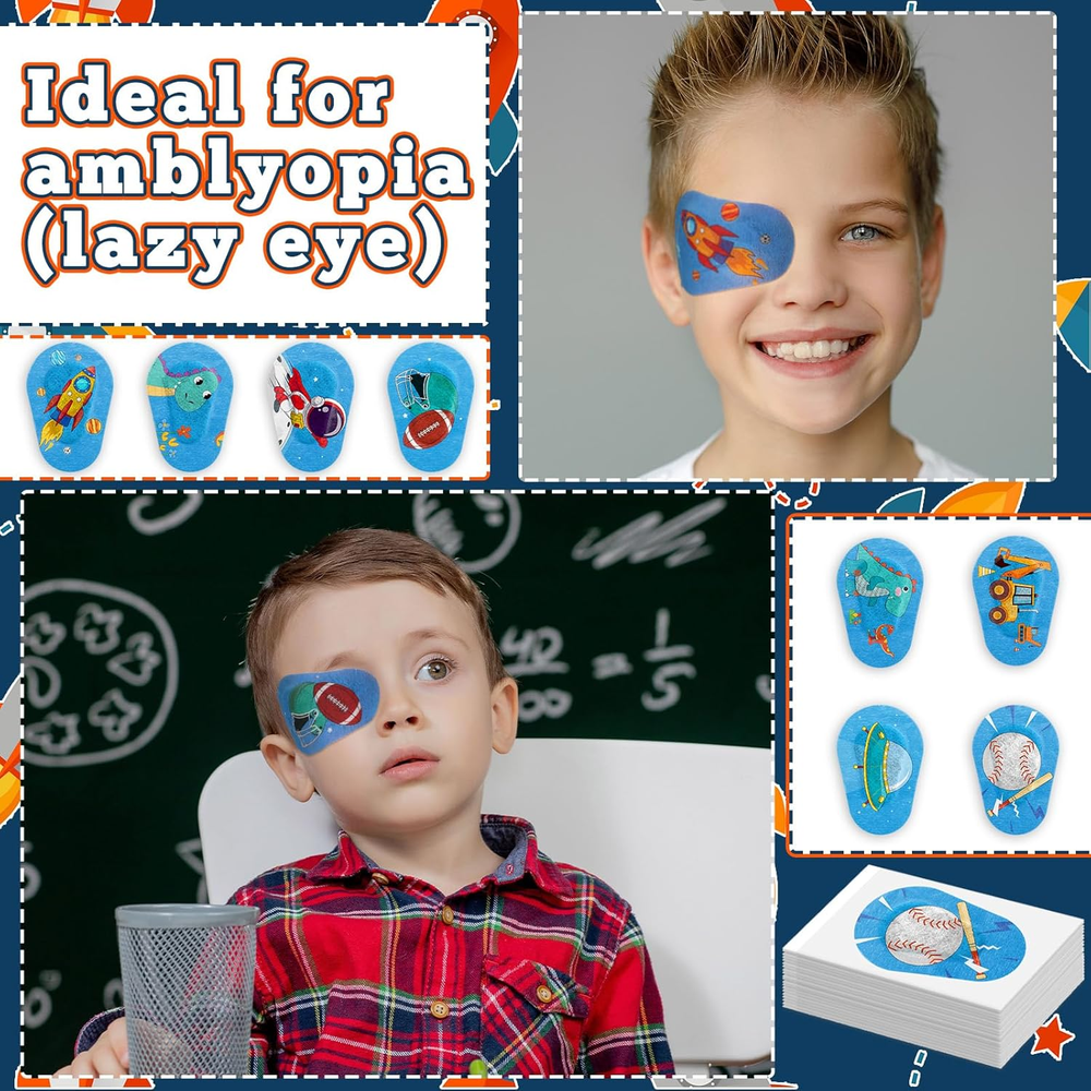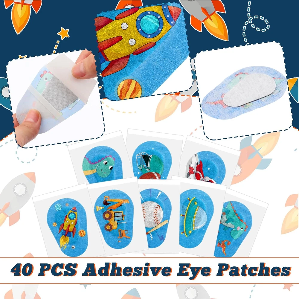 40 Pcs Kids Eye Patches for Boys Toddlers Adhesive Patches Bulk with Lazy Eye Breathable Fabric Pad Light Blocking Cute Designs Cotton Adhesive Bandages for Boys Children Enough to Use: the package includes 40 pieces of kids eyepatch for glasses in 8 different designs, 5 pieces for each style, sufficient quantity can meet your daily use and replacement needs, you can also share with your friends and family members Comfortable and Gentle: these adhesive eyeglass patches for kids are mainly made of non woven cotton material, breathable and comfortable, soft and reliable, not easy to deform or break, you can apply with confidence Appropriate Size: each right eye patch measure about 3 x 2 inches/ 75 x 50 mm, suitable for most kids, easy to put on and remove, not easy to leave sticky residue, providing nice coverage and protection Variety of Designs: coming with 8 different cartoon designs to choose from, your child will love wearing these eye patches for kids, and your child can apply it for a long time with confidence Versatile Use: whether it's for healing after an eye surgery or just protecting a small eye injury, the adhesive eye patch is suitable for kids on various occasions, such as school, sports and outdoor activities Product Description 4.45 inches x 11.02 inches x 0.63 inches. Weight: 0.63 oz Country of Origin China Package Dimensions 11.02 x 4.45 x 0.63 inches; 0.63 ounces