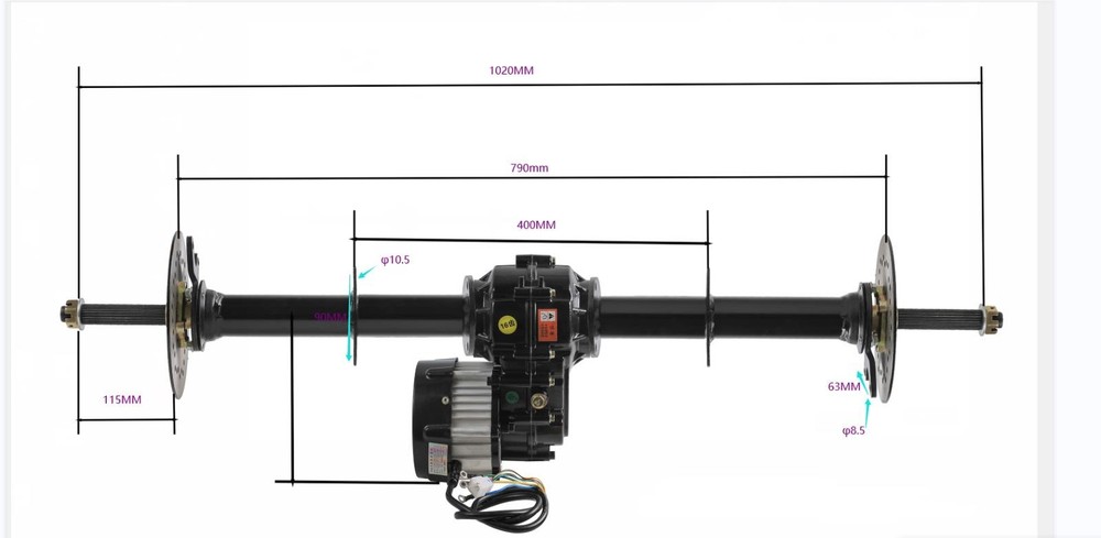 Drivetrain Configuration: A 4-wheel drive axle system typically consists of a transfer case, front and rear axles, differentials, and drive shafts. The transfer case distributes power from the engine to both the front and rear axles. Power Distribution: In a 4WD system, torque is distributed to all four wheels simultaneously. This allows for improved traction and handling in various driving conditions, especially off-road, snowy, or slippery surfaces. 72V 1500W brushless DC differential motor Voltage(V): 72V Output Power:1500W Commutation: Brushless Speed(RPM): 4800rpm Rated current:18-35A Gear Ratio: 9.5:1 Torque: 2.62Nm High Speed : 20mph / Medium Speed : 16mph / Low Speed: 10mph 40" Differential Rear Axle Drive Shaft kit Axle Length: 40 inch Comes with pair axles Package Include: 2x Rear differential Axles 2x 1500w 72v brushless motor 2x 72v 1500w speed controller 1x brushless wiring harness 1x ignition key switch 1x 3 speed switch 1x throttle pedal 1x brake switch 1x charging port 1x terminal block 1x forward reverse switch 1x power indicator 1x rear brake caliper 1x front brake caliper 2x disc rotors for front brake caliper 1x 25ah air switch 1x4 wheel drive axle kit assembly 1x upper / lower suspension swingarm 4x tie rod end 8x Mount Bracket Instruction video, please check this link https://youtu.be/RoZE1SYAxHo Listing and template services provided by inkFrog