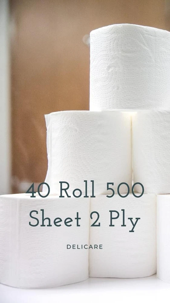 40 Rolls DeliCARE Soft Toilet Paper 500 Sheets 2Ply NO CLOG SEPTIC SAFE Virgin