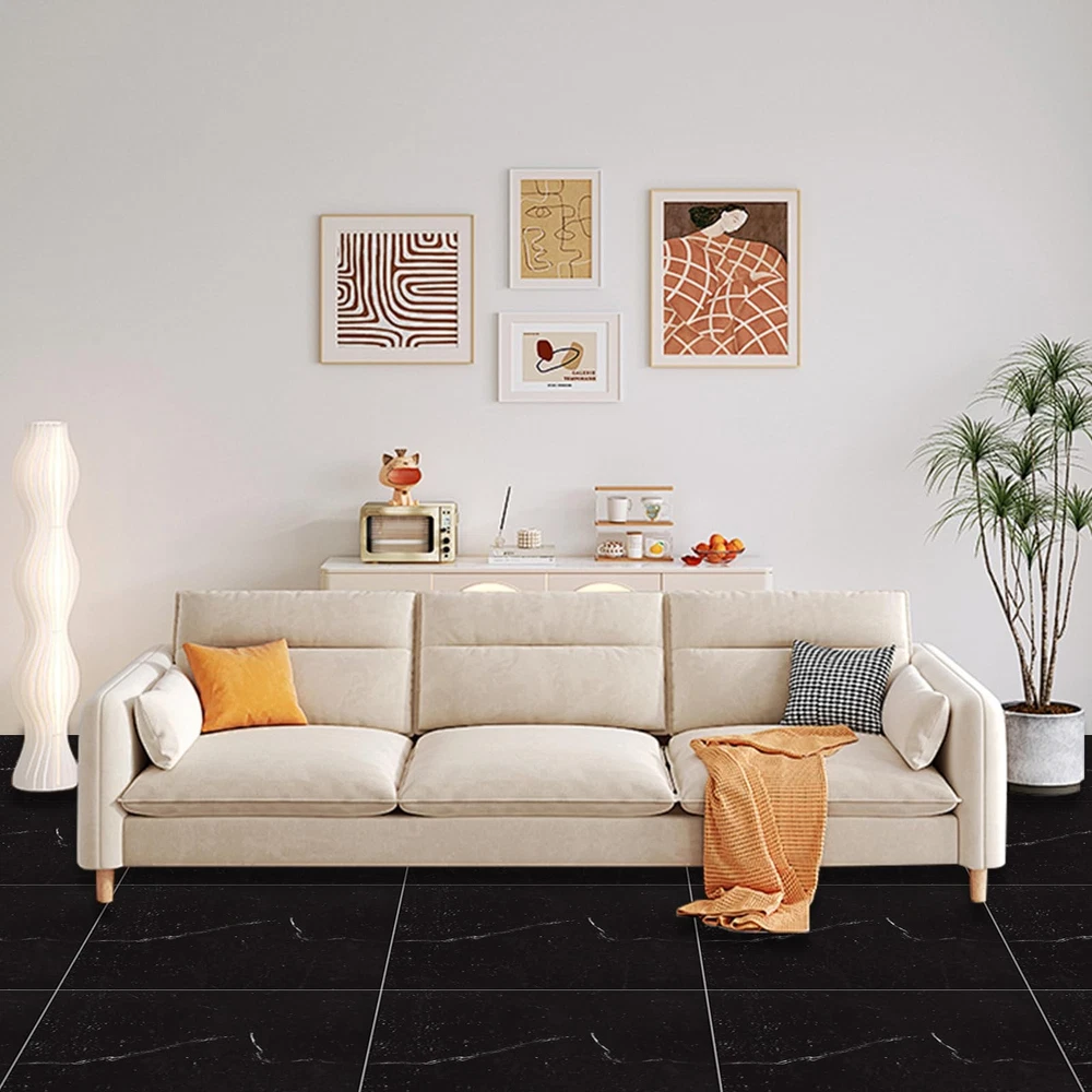 40 Pack Stick on Floor Tiles Marble Black, 12x12 Peel and Stick Vinyl Flooring, Self Adhesive Vinyl Floor Tiles Clearance, RV Laminate Vinyl Sheet Flooring, Waterproof Flooring for Bathroom, Kitchen, Basement, Office Note: Please carefully check 【Gentle Reminder】 before purchasing. Features: 1. Elevate your space with 40 pack wood grain floor tile. 2. Affordable and easy-to-install vinyl flooring solution. 3. Waterproof and fire-resistant for long-lasting protection. 4. Convenient peel and stick design for hassle-free application. 5. Versatile grain pattern for a stylish touch in various rooms. Specifications: Material: Vinyl Sizes: L*W: 11.8x11.8 Inch Thickness: 0.05in / 1.3mm Color: Black Marble Grain【1】 Package includes: 40 Pack Vinyl Flooring Sizes & Package: You will receive 40 sheet Vinyl Flooring, which measuring 11.8x11.8 inch each, with a thickness of 0.05inch / 1.3mm. Cover around 40 square feet with this value package. Gentle Reminder: 1. Please confirm again before purchasing that the size (especially thickness) can meet your needs to avoid an unpleasant shopping experience. 2. There may be slight color differences between different batches of laminate flooring. 3. Please clean the floor before use and ensure that the floor is always flat and dry. 4. Please kindly keep off the new floor for 48 hours after tile adhesive sets. Economical & Practical: 's Floor Tile series offers a budget-friendly way to decorate floors quickly and easily without hassle of using adhesives or hiring professionals. Easy to peel and stick, and the detachable design will not damage the floor's original appearance. Customize sizes and patterns as your needed with a utility knife for a fresh space. Superior Material: Made from quality vinyl material, lightweight yet durable Tile Flooring have certain fire and water resistance, protecting floors from scratches, dents and stains, ensuring long-term use. With a pressure-sensitive adhesive backing, the stickiness improves with use without leaving residue upon removal. Wide Application: Vinyl Floor Tiles are ideal alternative to expensive flooring, suitable for various settings like bathrooms, kitchens, basements, offices, laundry rooms, bedrooms, living rooms, rental properties, kids' playrooms, hallways, entryways and more.