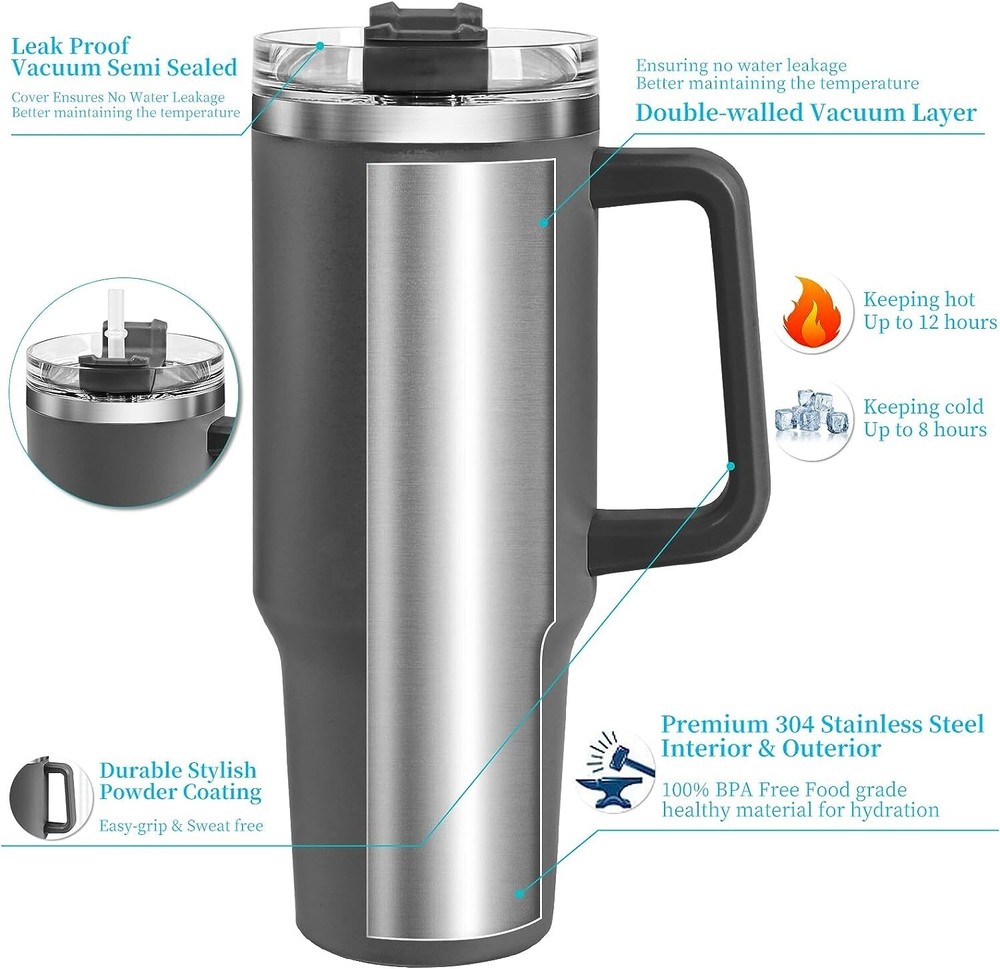 Care Instructions: Hand Wash Only Material: Stainless Steel Keeps Cold For: 12 hrs Capacity: 40oz gtin13: 659821453689 Item Width: 3.8 UPC: 659821453689 Keeps Hot For: 8 hrs Pattern: Solid Color Department: Unisex Baby & Toddler, Boys, Girls, Kids, Teens, Adults Item Height: 9.7 Personalize: No Features: With Handle Type: Tumbler Brand: Unbranded Beverage Type: Hot or Cold Color: Black Country/Region of Manufacture: China Character Family: Loving Family Lid Type: Drink Through Number of Items in Set: Three-Piece