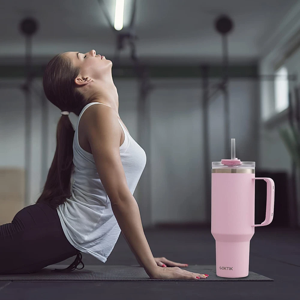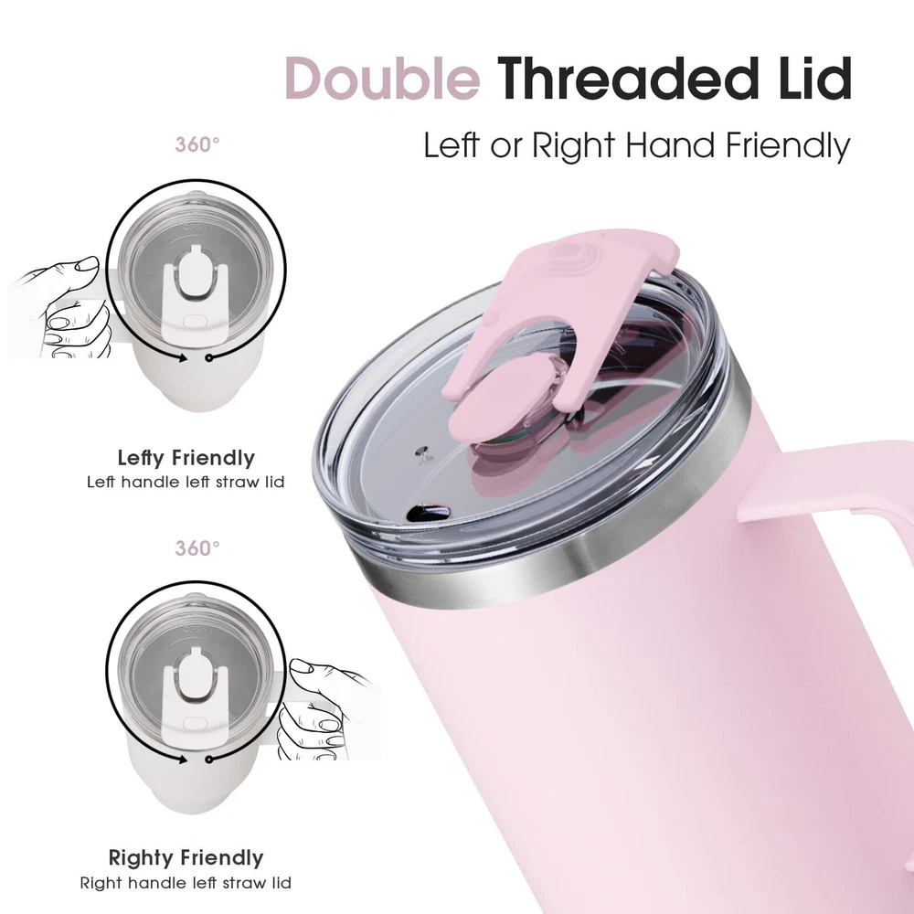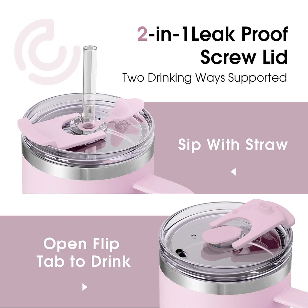 PREMIUM STAINLESS STEEL TUMBLER: 40 oz insulated tumbler is made of 18/8 food-stainless steel with double-walled, it is no BPA and non-. Electro-polished interior doesn't transfer flavor & no metal aftertaste, you don't have to worry about your morning coffee or tea LEAK PROOF TUMBLER: Our 40 oz tumbler features a 100% airtight spill and double-threaded twisting design, keeps the cup completely sealed and sweat proof. You can confidently carry it with you wherever you go 30 HOURS COLD/NO SWEAT: The stainless steel tumbler with double-wall vacuum insulation, you can enjoy your favorite drinks cold for up to 30 hours and hot for up to 10 hours, and it won't sweat! Savor every sip without worrying about the temperature of your drink CUP HOLDER FRIENDLY: 40 oz travel tumbler fits perfectly in any car cup holders, making it perfect for your daily commute or your next workout.Tumbler also has a humanized design silicone sleeve and handle, easy to drink directly or through a straw, on-the-go hydration CUP HOLDER FRIENDLY: 40 oz travel tumbler fits perfectly in any car cup holders, making it perfect for your daily commute or your next workout.Tumbler also has a humanized design silicone sleeve and handle, easy to drink directly or through a straw, on-the-go hydration