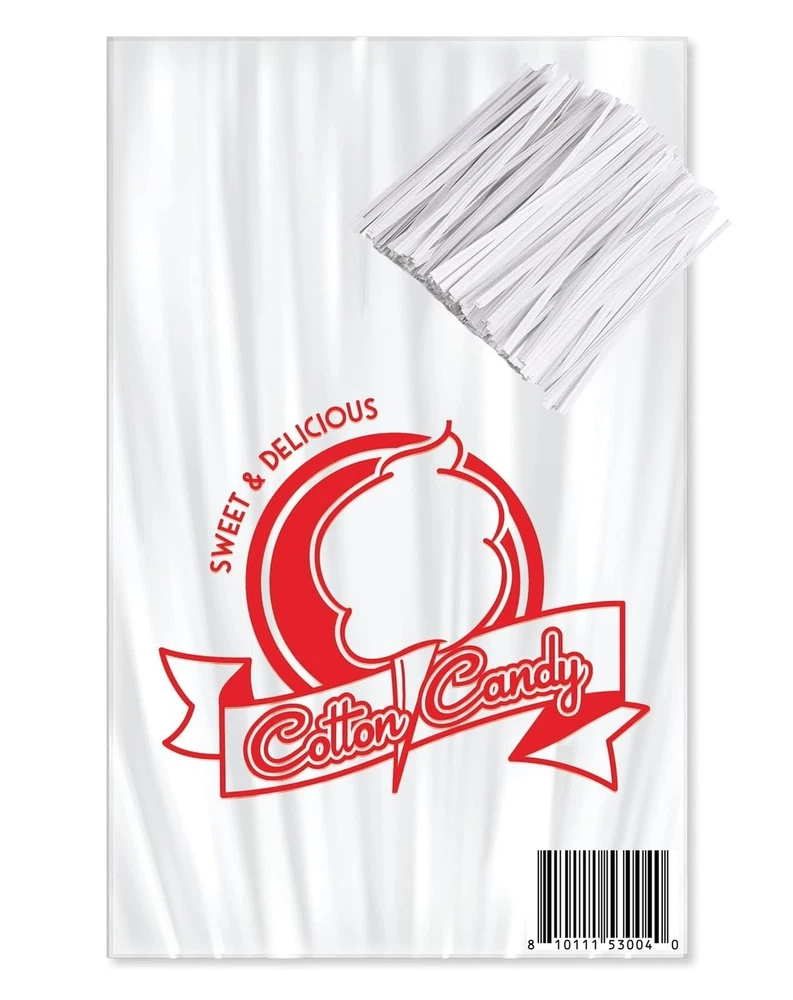 400 Cotton Candy Bags with Ties – 18.5" X 11.5" X .8 Mil Thick Printed Bulk C...