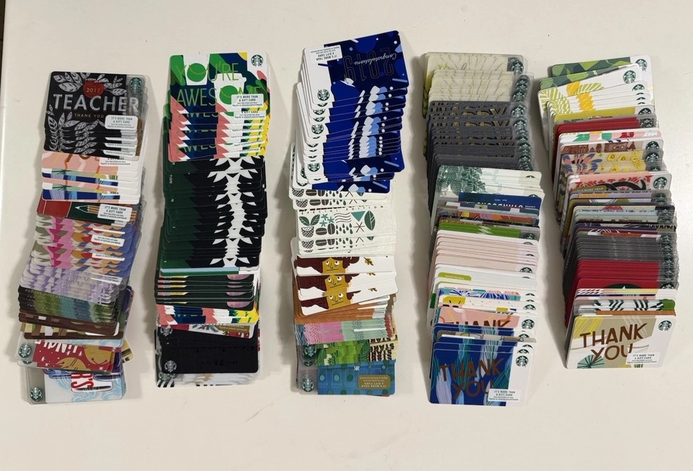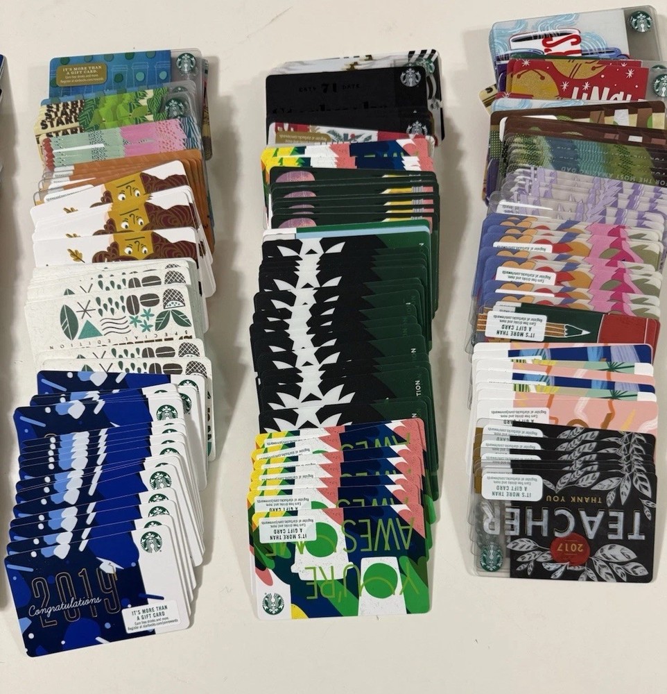 400 new and all unused Card Lot Starbucks Gift Cards Collection with all different occasions with some being multiples cards of the same . The condition of all these cards are brand, new, unused, . Never had any balances put on them . There are special edition and paper style for all occasions Shipped with USPS Ground Advantage. Thanks for looking