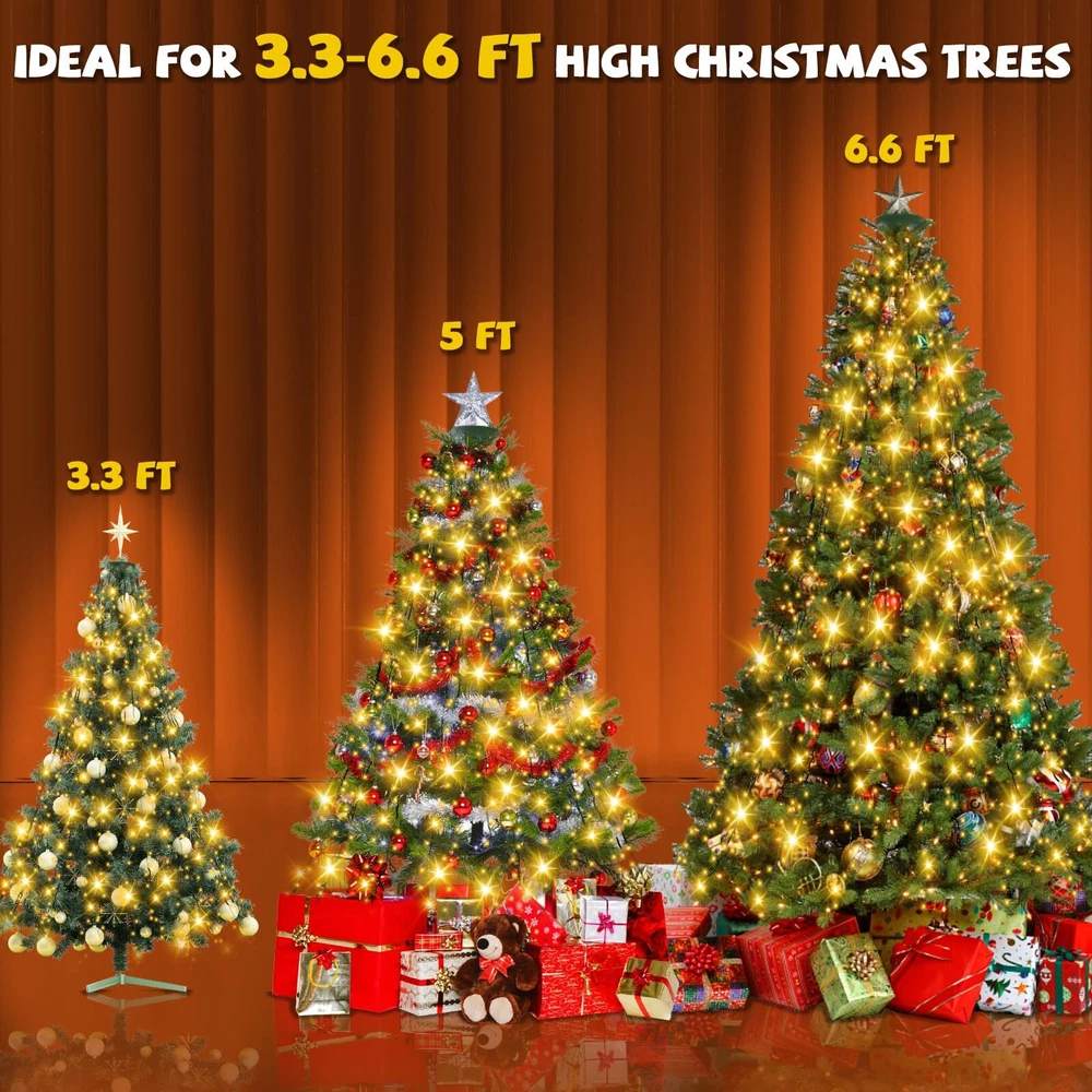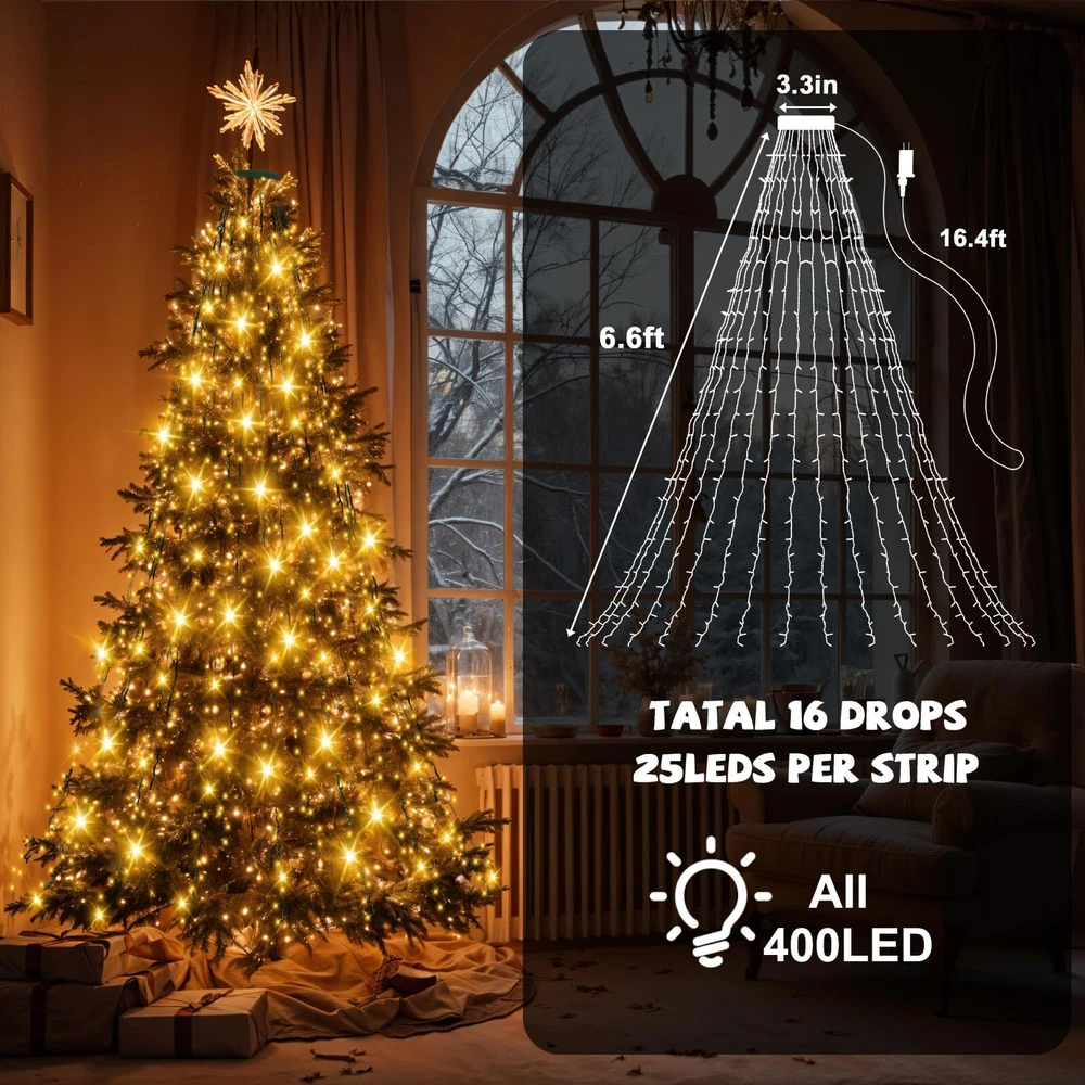 đăChristmas Tree Lightsă16 light strings, 400 light beads, specially designed for Christmas trees 3.3-6.6Ft high. The dark green line has good concealment, making it an ideal choice for decorating indoor and outdoor Christmas trees đăHow to UseăHang the disc on the top of the tree, then untie the string of lights one by one and hide them in the branches. The bright and warm lights can make the Christmas tree shine and move at night đăTimer Functionă6 hours on 18 hours off, automatically cycle the process, saving energy. Long press the button on the plug for 3 seconds until the button turns green, that is to start the timer mode đă8 ModesăOur Christmas tree lights come with 8 light modes: blinking, constant light and so on, short press the button on the plug to switch as you like đăIP44 WaterproofăWrapped in insulating material, rainproof, snowproof and windproof, excellent for outdoor use. Please note: The adapter is not waterproof, please keep it dry đăWhat You Getă400 LEDs Christmas tree lights x 1, US plug x 1, instructions manual x 1. If there is any problem, please leave a message to our backstage at the first time, we will give you a satisfactory solution