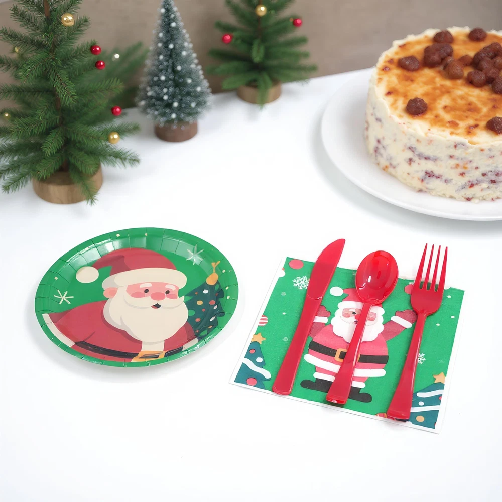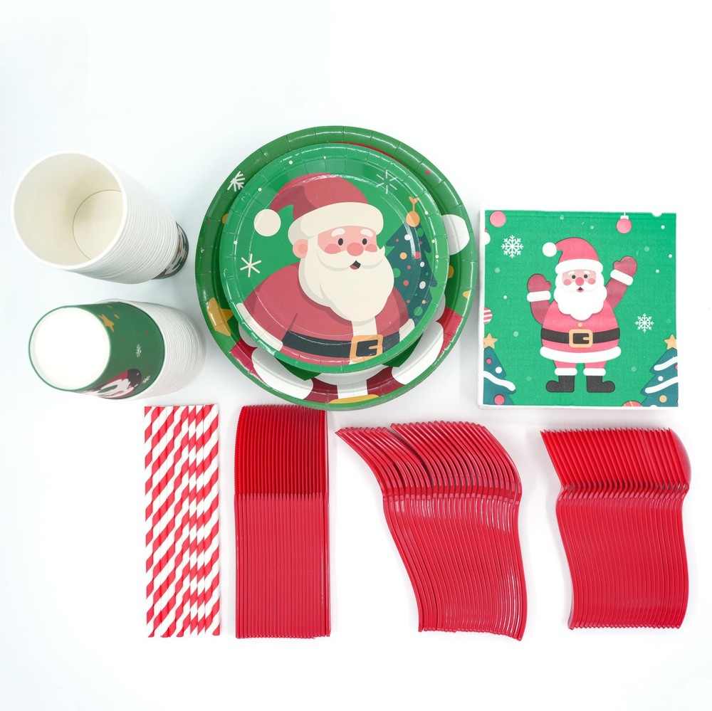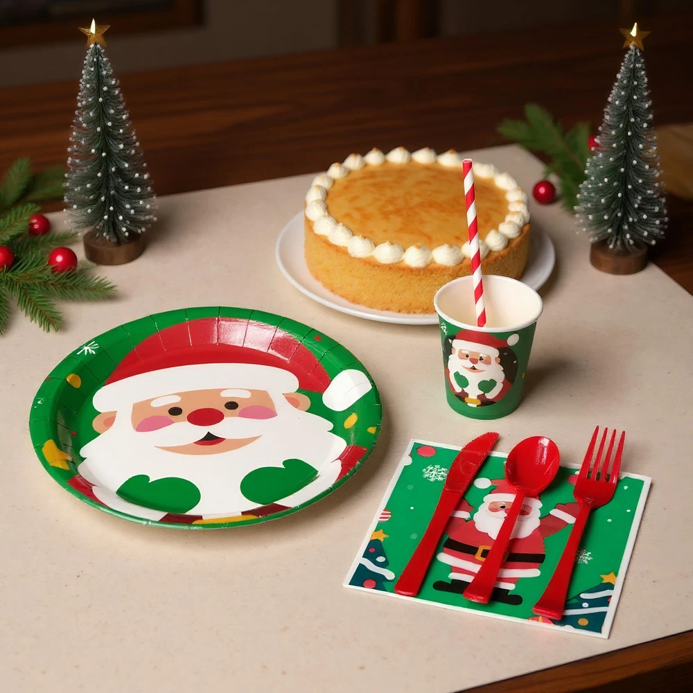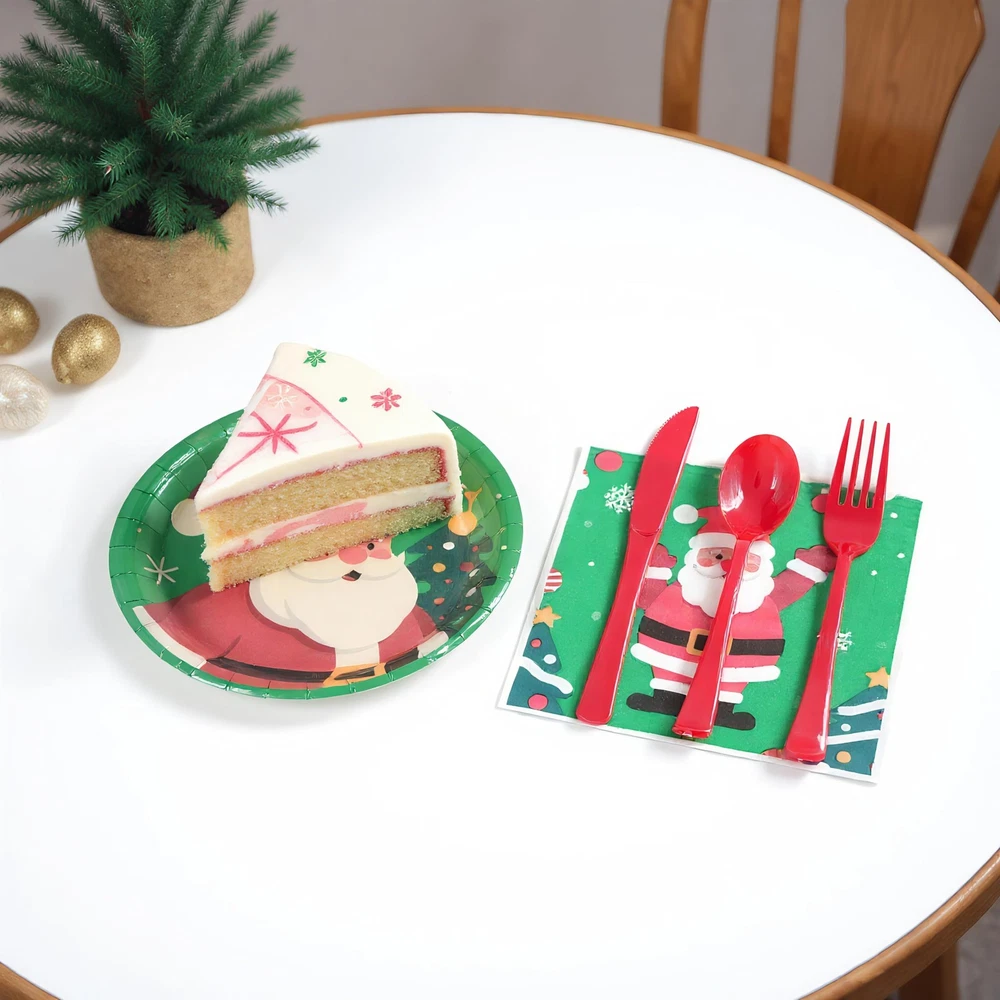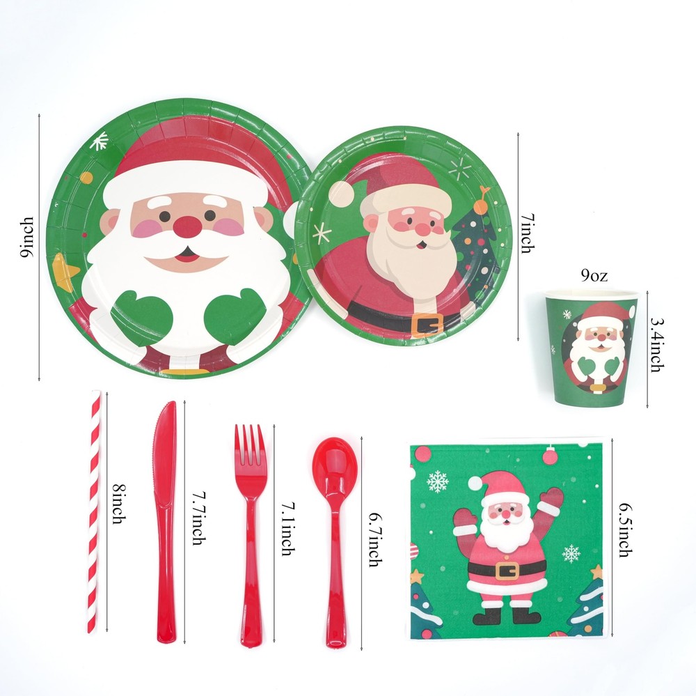 400-piece Christmas paper tableware set, disposable knives, forks, spoons, silverware, napkins, straws, Christmas plates and paper cups, can be used by 50 guests, high-end party supplies. This Christmas party plate, cup and napkin straw set contains 50 9-inch pieces (about 22.9 cm) Disposable Santa tableware, 50 7-inch pieces (about 17.3 cm) Santa Claus paper plate, 50 9-ounce Christmas paper cups, 50 6.5-inch (about 17 cm) Christmas napkins, 50 7.7-inch (about 19.5 cm) red plastic spoons, 7.3-inch (about 18.5 cm) forks and 6.8-inch (about 17.3 cm) knives and 50 red striped straws. This disposable plastic Christmas tableware set is made of strong materials. The disposable plate with a Santa Claus pattern remains intact throughout the event, allowing you to use it with peace of mind throughout the event and meeting all your needs. We have customized Christmas-style disposable plastic trays to suit your needs. These disposable and durable plates are free of bisphenol A and can be safely used to hold food. You can enjoy a Christmas celebration, barbecue party or birthday party with peace of mind because we offer disposable paper plate sets with matching straws, party cups and napkins that perfectly complement the scene decoration, allowing you to use it with peace of mind and easily enhance the party atmosphere. These Christmas disposable party plates are thoughtful gifts for relatives and friends. They can be thrown away immediately without cleaning, saving time and energy and giving you more time to share a happy party with friends and family. This Christmas party plate and cup and napkin straw set includes 50 9-inch pieces (about 22.9 cm) Santa Claus tableware for single-use, 50 7-inch (about 17.3 cm) Santa Claus paper plates, 50 9-ounce Christmas paper cups, 50 6.5-inch (about 17 cm) Christmas napkins, 50 7.7-inch (about 19.5 cm) red plastic spoons, 7.3-inch (about 18.5 cm) forks and 6.8-inch (about 17.3 cm) knives, 50 red striped straws. This disposable plastic tableware set is made of strong materials and will meet all your needs. Robust and durable: This disposable tableware set is solidly constructed and suitable for all types of parties. The disposable plate with a Santa Claus pattern remains intact throughout the entire event, allowing you to use it with peace of mind throughout the event. Health and Safety: We have made Christmas style disposable trays based on your needs. These disposable heavy duty plates are BPA-free and safe for food use. Enjoy your Christmas celebrations, barbecue parties or birthday parties with confidence because our disposable tableware sets and accompanying straws, party cups and napkins can be used with confidence. Exquisite and practical gifts: These disposable party paper plates are thoughtful gifts for relatives and friends. They are thrown away immediately without cleaning, saving time and effort, allowing you to have more time to share happy parties with your relatives and friends. Universal application: This Christmas tableware set is perfectly suitable for all kinds of festival activities, from Christmas parties, barbecue dinners to carnival birthday parties. It can perfectly match the scene decoration and easily enhance the party atmosphere.