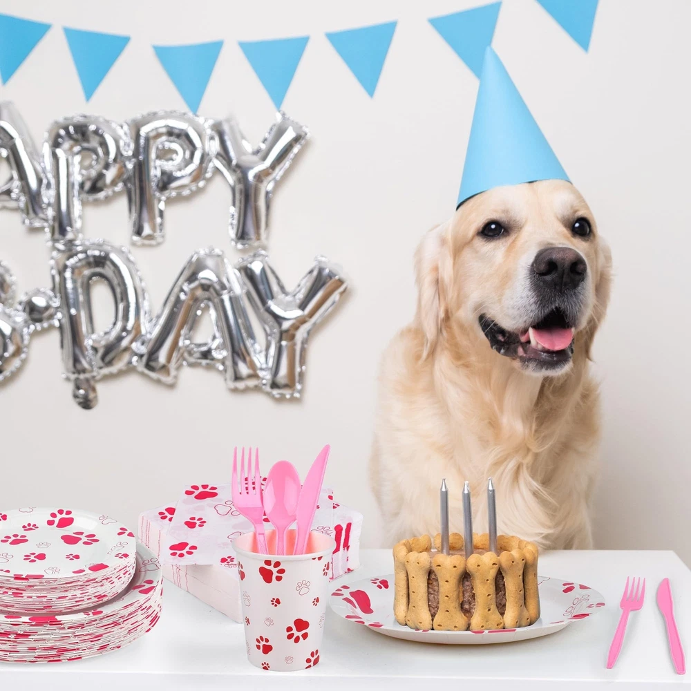 Specifications: Material: paper, plastic Size: as shown in the pictures Color: as shown in the pictures Quantity: 400 Package includes: 50 x 7-inch paper plates 50 x 9-inch paper plates 50 x 9-ounce paper cups 50 x forks 50 x knives 50 x spoons 100 x napkins Sufficient package: our set contains a total of 400 pink paw party supplies, including 50 pieces of 7-inch/17 cm plates, 50 pieces of 9-inch/22 cm plates, 100 pieces of napkins, 50 pieces of 9-ounce paper cups, 50 sets of knives, forks and spoons, sufficient to meet your party use and Premium material: our puppy paw print theme tableware is made of quality thick paper, safe and sturdy, not easy to break or leak; the paper napkins are soft and absorbent, the disposable forks, knives and spoons are made of reliable plastic; our smooth and waterproof utensils can serve you for a long time Unique design: our dog party decorations are well designed with pink dog paw elements, delicate and eye-catching; the vivid design and vibrant colors will create a nice visual enjoyment and add more energy to your puppy party Wide applications: the pink paw party supplies are great choices for various parties, such as birthday parties, pet themed parties, dog showers, picnics, home parties, camping, barbecues and more Practical gift: the plates, cups, napkins and cutlery are disposable, you can throw the puppy party supplies away directly after use without worrying about the mess or spending a lot of time on cleaning, so you can give the paw patrol plates as a practical gift to your friends or family
