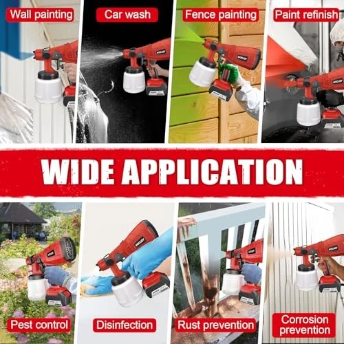 Menu 1. We require immediate payment. 2. We currently accept payment via eBay managed payments only. 3. Once payment is cleared, we will dispatch your shipment within 1-3 business days. Please refer to the "Shipping" tab for more information regarding shipping speed to your destination. Cordless Paint Sprayer with 4000mAh Waterproof Battery,850w Handheld HVLP Paint Sprayer for Furniture,Cabinets,Fence,Walls,Door,Garden Chairs,DIY Projects,etc Product description 【Powerful and efficient】Cover an 8x10’ wall in 5 minutes. Cover an 8x10’wall in 5 minutes. A single battery charge will provide 30 minutes or 480 sq ft while painting. 【Dustproof and waterproof battery】4000mAh high-capacity battery, IPX7 waterproof and dustproof, fearless of dust and humid environment.Battery life is 2 times longer than other li-ion battery. 【Wide Application】This spray paint gun is suitable for house painting, such as walls, fences, doors, garden chairs and other DIY projects. Without the limitation of power cords, you are free to explore more usage scenarios! 【Fully Adjustable】Easy to set up for every project with variable paint flow, adjustable spray width, and changeable pattern size and direction (horizontal/vertical and wide/narrow) 【Easy to Clean and Use】Equipped with 4 sizes of copper nozzles, effectively preventing leakage and clogging, and easier to clean compared to plastic nozzles. Even if you are a novice, you can easily get started after reading the user manual. 【Complete spraying solution】The kit includes paint gun, 4.0Ah battery, charger, protective mask, masking film, cleaning tool, funnel, 4 nozzles (1 installed), instructions. Simply prepare the paint and get started! PLEASE MESSAGE US IF YOU HAVE ANY OTHER QUESTIONS, AND MANY THANKS FOR READING ALL OF THIS. Copyright ©#. All Rights Reserved.