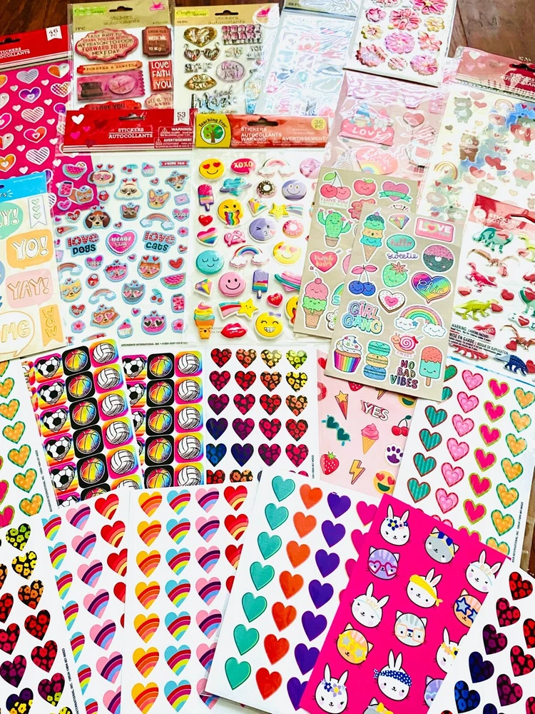 All stickers are BRAND NEW | New Full Sticker Sheets! Popular Mixed Sticker Lot | The Ultimate Kit | Qty. 400+ Stickers | High Quality Only! Fun Assortment of Puffy, Scrapbook, Cartoons, Bubble, Pop Up Stickers Packs For Everyone! I have included a large variety of pictures of the assortment available. The pictures give you an idea of what you will be receiving. Please Note: You will not receive everything pictured. Please contact me with any special requests. This HUGE Variety of fun designs stickers can be used in parties, classroom, school and home, good for reward for students, potty training, adding inside a birthday card, game activities, entertaining toddlers, etc. Perfect Gifts for Kids & all Occasions: Can be given as a gift for kids, girls, boys, toddlers, teens, students, friends, and classmates, they will love it! Each package of stickers is a different style & theme with some lovely embellishments like rhinestones, ribbons, buttons and other 3D details that make these quality stickers look so unique!