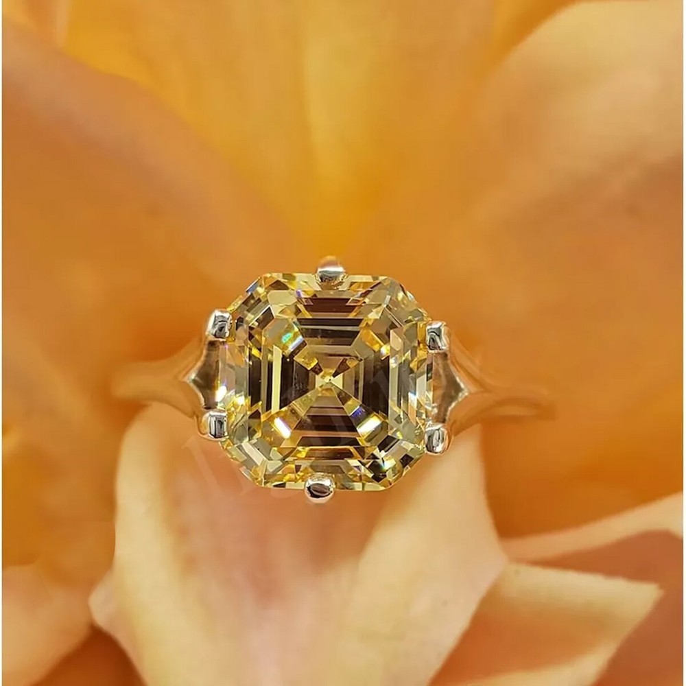 RARE 24.30 Ct Radiant Cut Off White Treated Diamond Ring in 925 Silver Cert