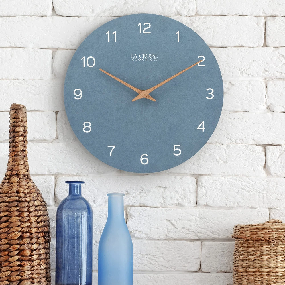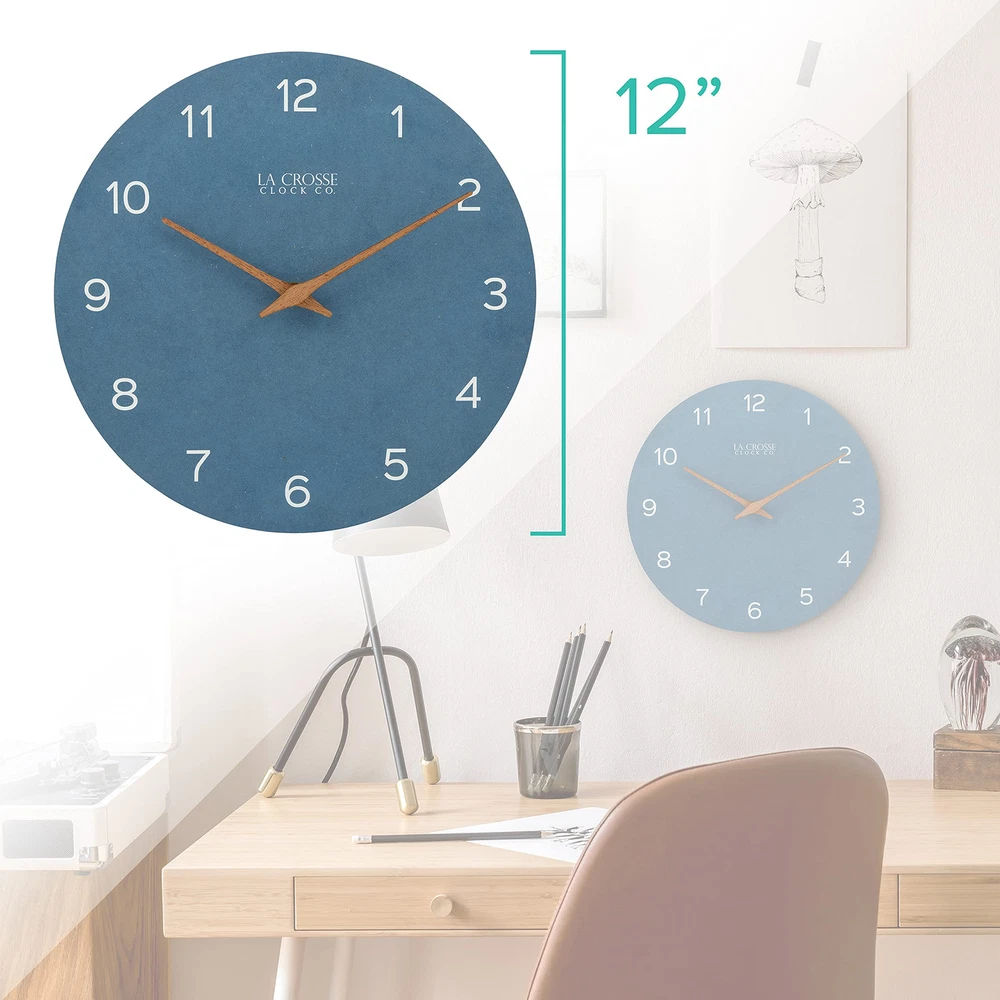 Introduce serene sophistication to your space with the Technology 12" Tahoe Quartz Analog Wall Clock (404-3630A), a stunning timepiece that perfectly balances modern design with natural elements. The distinctive wall clock combines contemporary style with versatile appeal that enhances any room's décor. The dusty blue design features a unique paper dial that creates a soft, matte finish reminiscent of lakehouse charm. The blue-gray palette provides a calming presence while maintaining sophisticated appeal, while natural wooden hour and minute hands add organic warmth to the contemporary color scheme. The open-face construction eliminates glare and reflection for optimal visibility from any angle, while precise quartz movement offers a soft ticking sound that provides a gentle reminder of time's passage. This elegant timepiece combines the grandeur of a grandfather clock with modern simplicity, working beautifully in both traditional and contemporary settings. Perfect for homes, offices, or any space deserving of sophisticated style, the Tahoe blue clock operates on a single AA alkaline battery (not included) for convenient, cordless operation. Elevate your space with this sophisticated wall clock 12 inch featuring a serene dusty blue wall clock design. The Tahoe blue clock combines eco-friendly materials with modern style, showcasing a recycled paper dial with crisp white numerals and natural wooden hands that create a perfect balance of contemporary and rustic elements. Experience the perfect blend of style and function with this gray blue wall clock that brings lakehouse charm to any room. This modern wall clock features an open-face design that eliminates glare and reflection, ensuring clear visibility from any angle while maintaining its sophisticated blue faux leather analog wall clock appearance. Transform your space with this analog wall clock blue design that perfectly captures coastal elegance. The wall clock wood hands add natural warmth against the soft matte blue-gray face, creating a timepiece that serves as both a reliable chronometer and a stunning piece of wall art. Discover timeless style with this blue and gray wall clock featuring precise quartz movement with a gentle ticking sound. The wall clock dusty blue design creates a calming presence in any room, while the eco-conscious recycled paper dial demonstrates a commitment to sustainable materials. Perfect for any room requiring sophisticated style, this grandfather wall clock inspired piece combines traditional elements with contemporary design. The 12-inch diameter provides ideal visibility while the battery-operated mechanism (requires 1 AA alkaline battery, not included) ensures convenient, cordless operation.